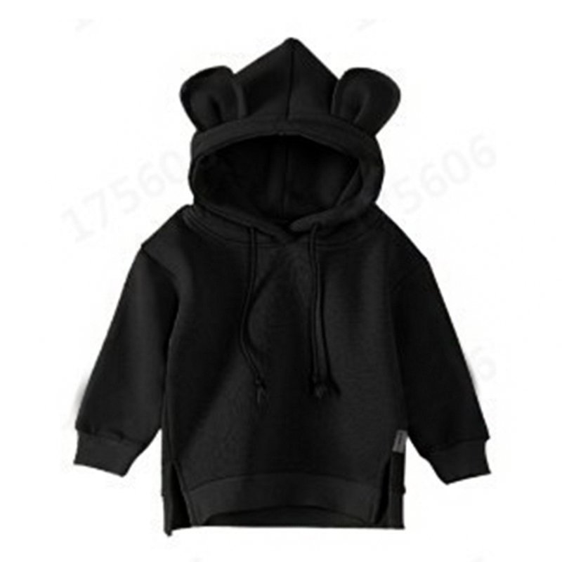 Girls Simple Solid Color Bear Ear Decor Hoodies
