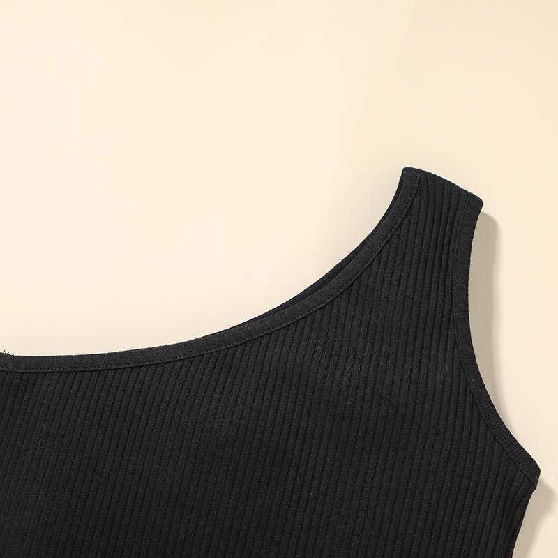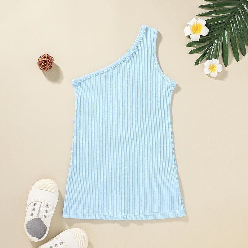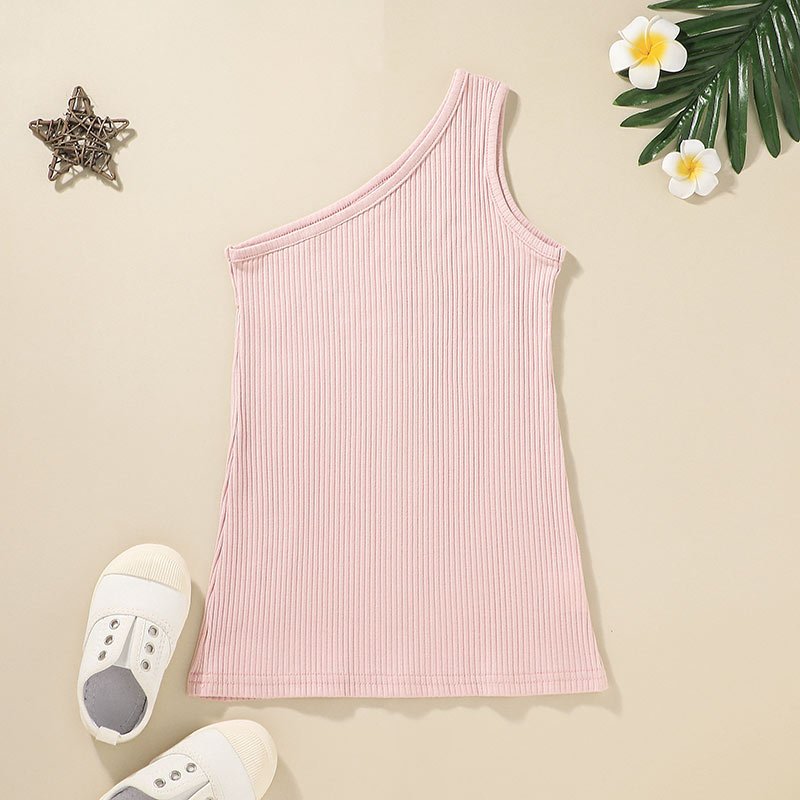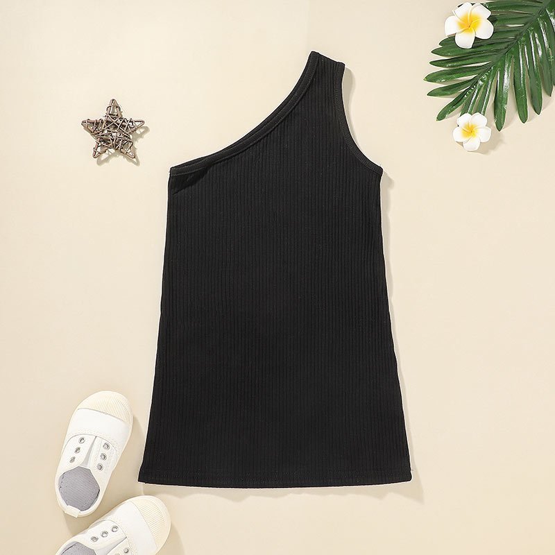 Girls Simple Solid Color One Shoulder Dress