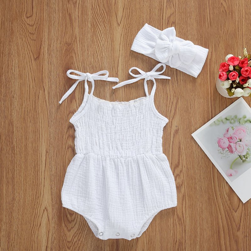 Girls Simple Solid Color Romper With Headband Set
