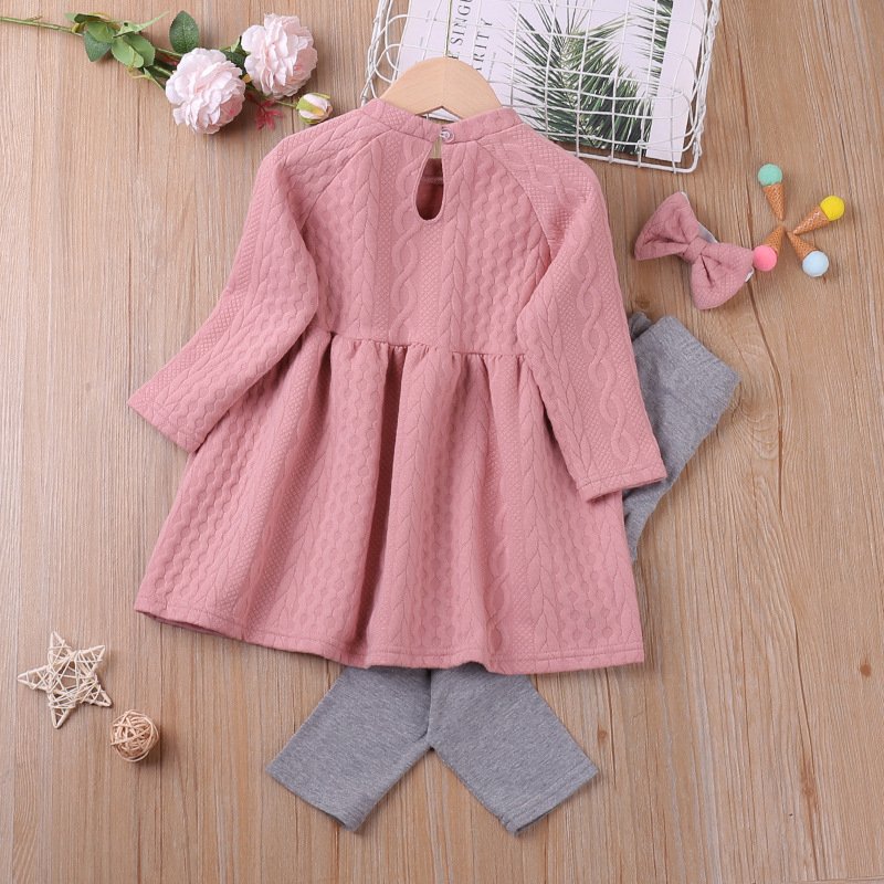 Girls Simple Solid Color Round Neck Long Sleeve Top And Pants Set