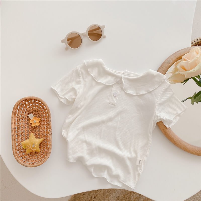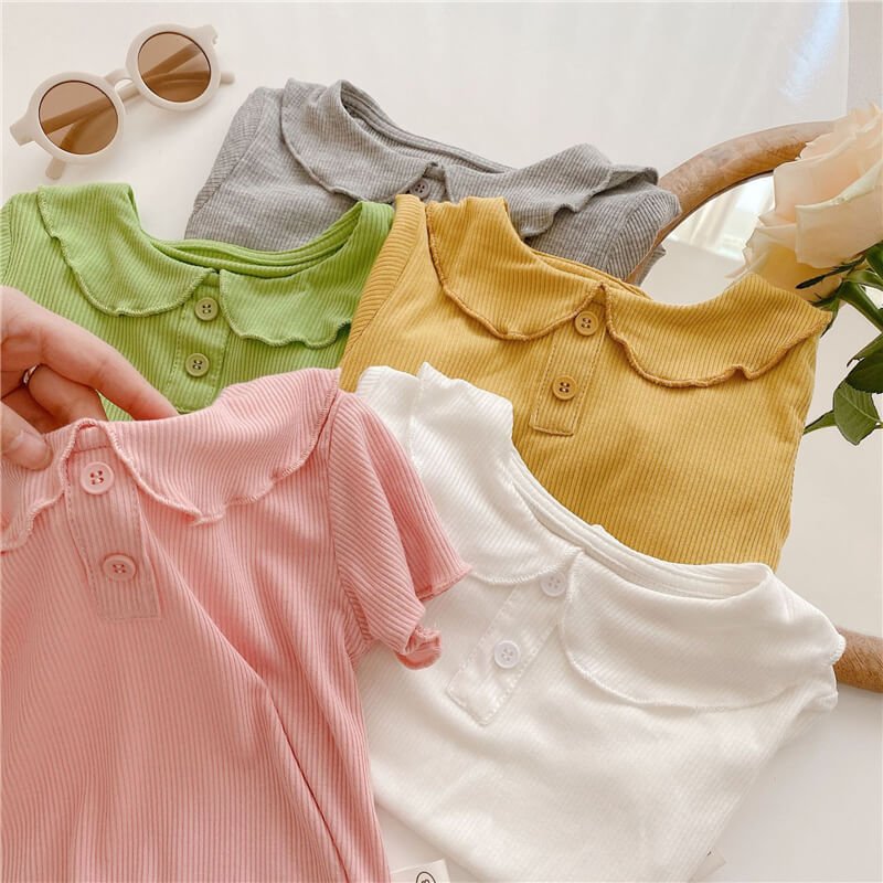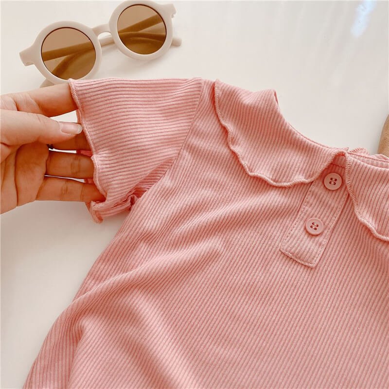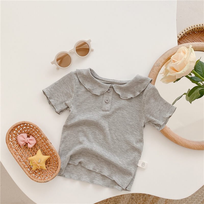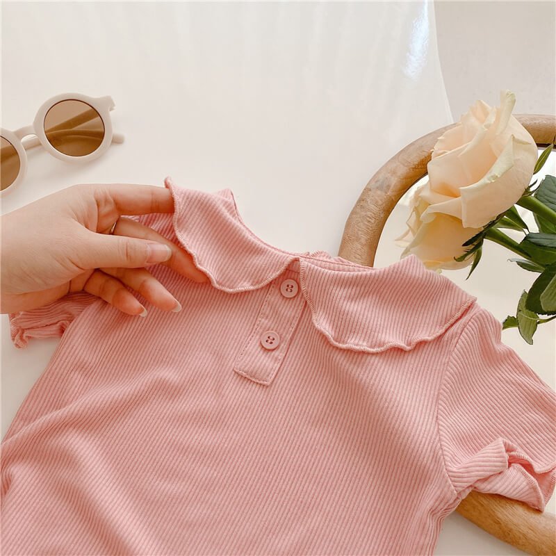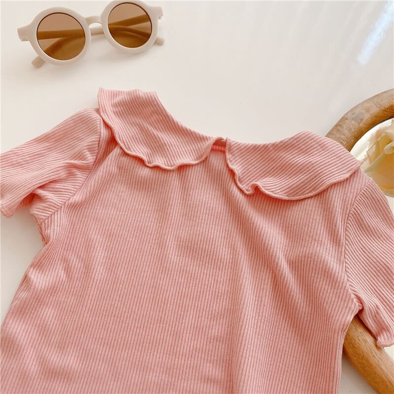 Girls Simple Solid Color Ruffled T-Shirt
