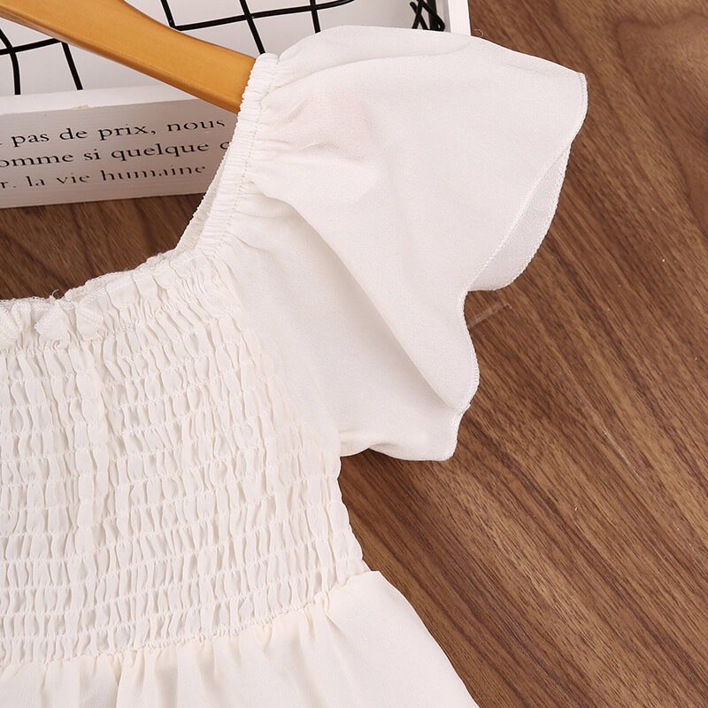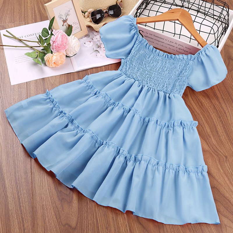 Girls Simple Solid Color Short Sleeved Princess Dress