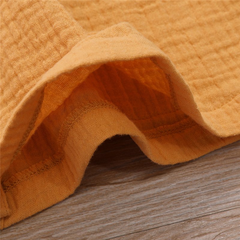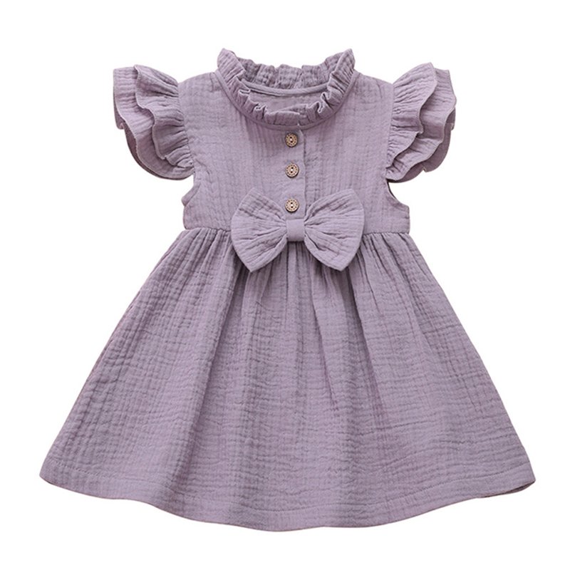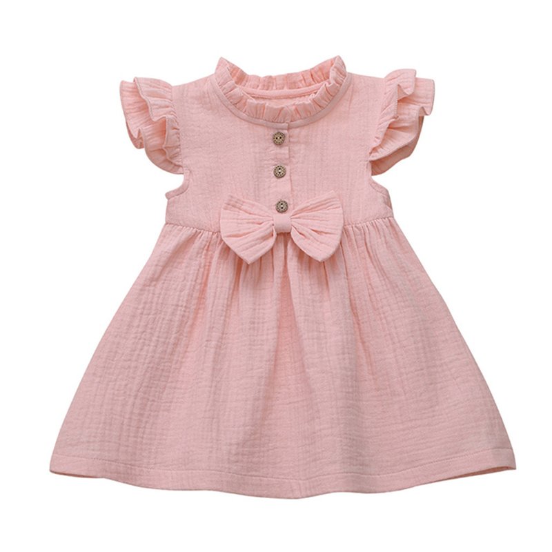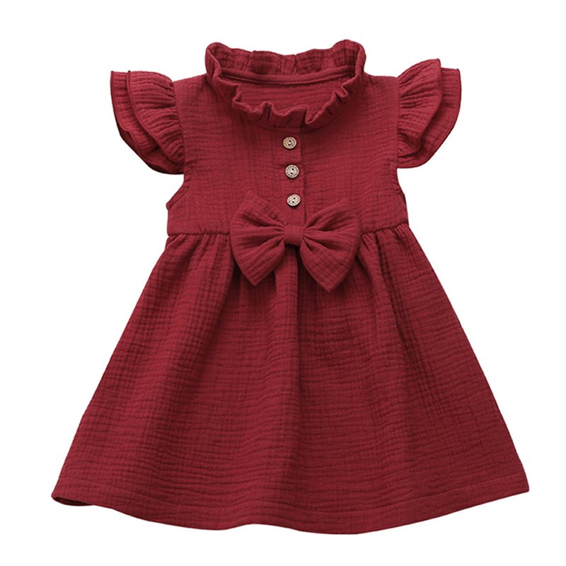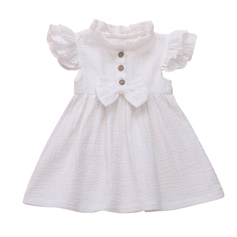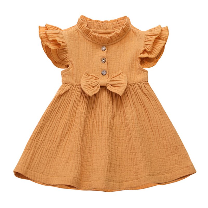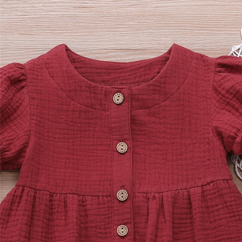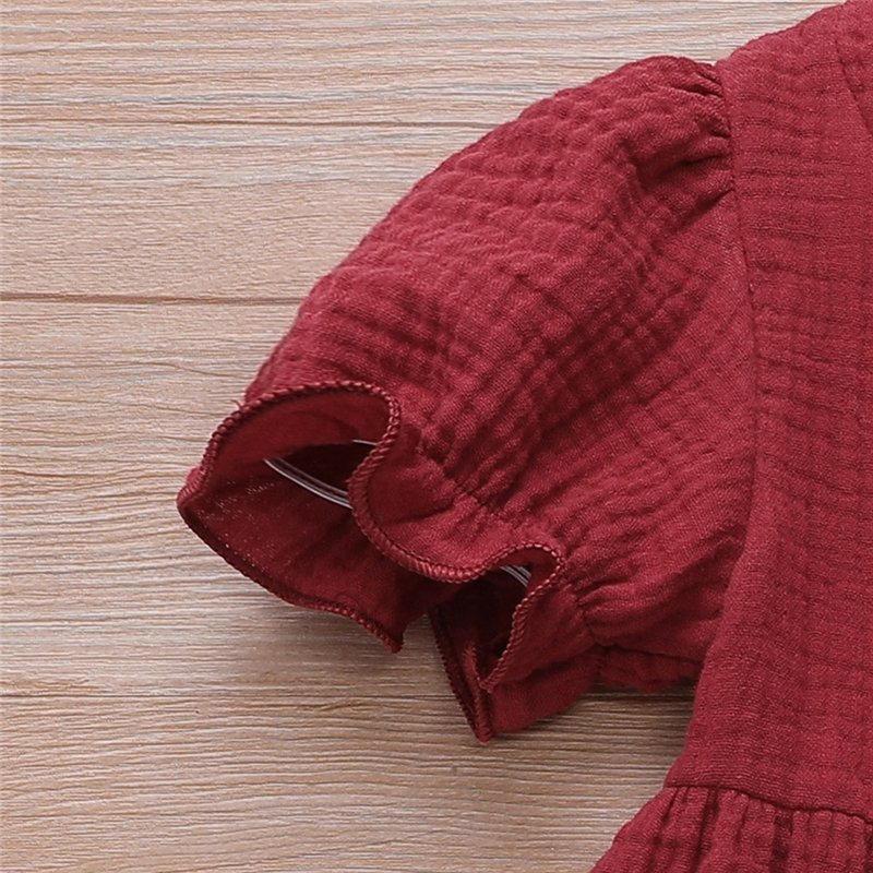 Girls Simple Solid Color Single-breasted Short-sleeves Dress