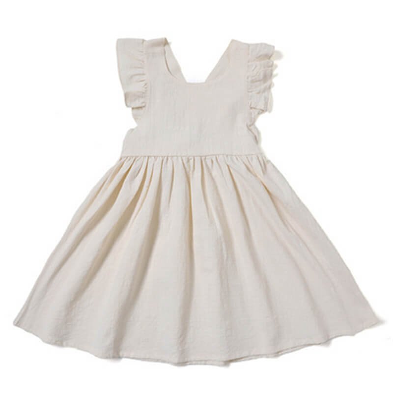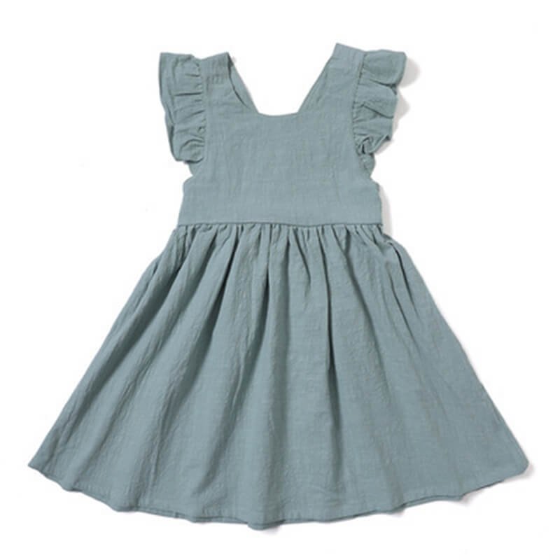 Girls Simple Solid Color Stringy Cross Strap Buckle Dress