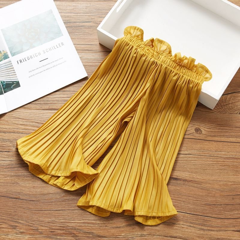 Girls Simple Solid Color Stringy Selvedge Casual Pants