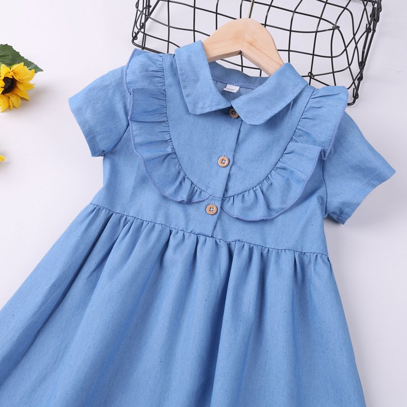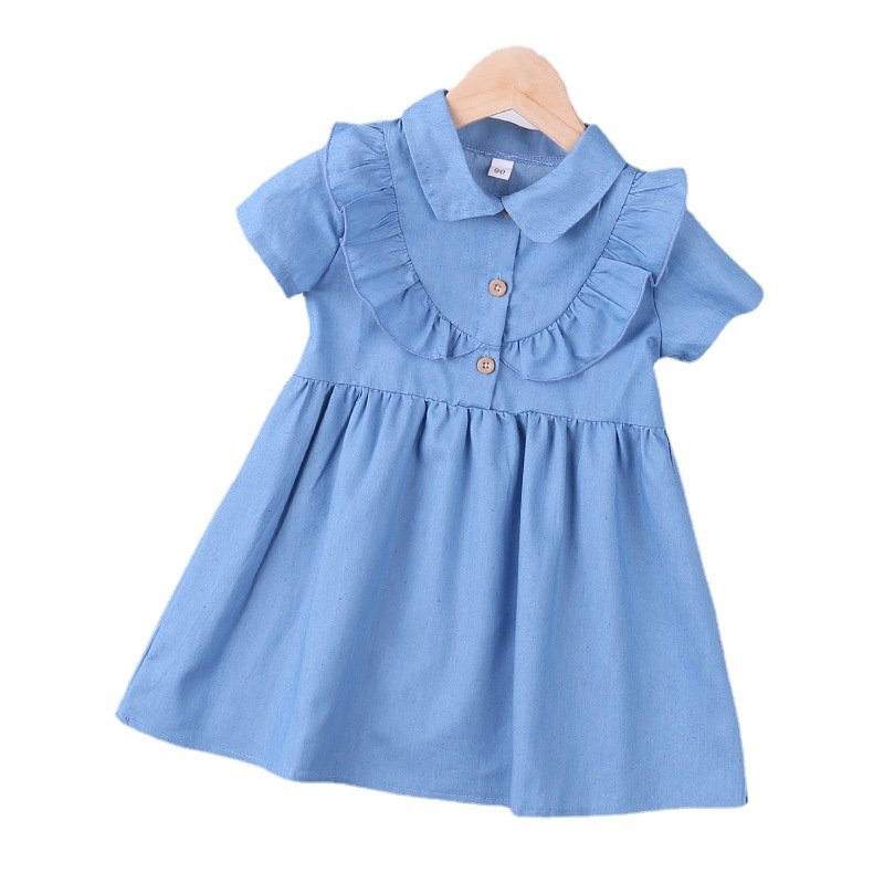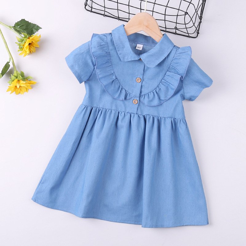 Girls Simple Solid Color Stringy Selvedge Design Dress