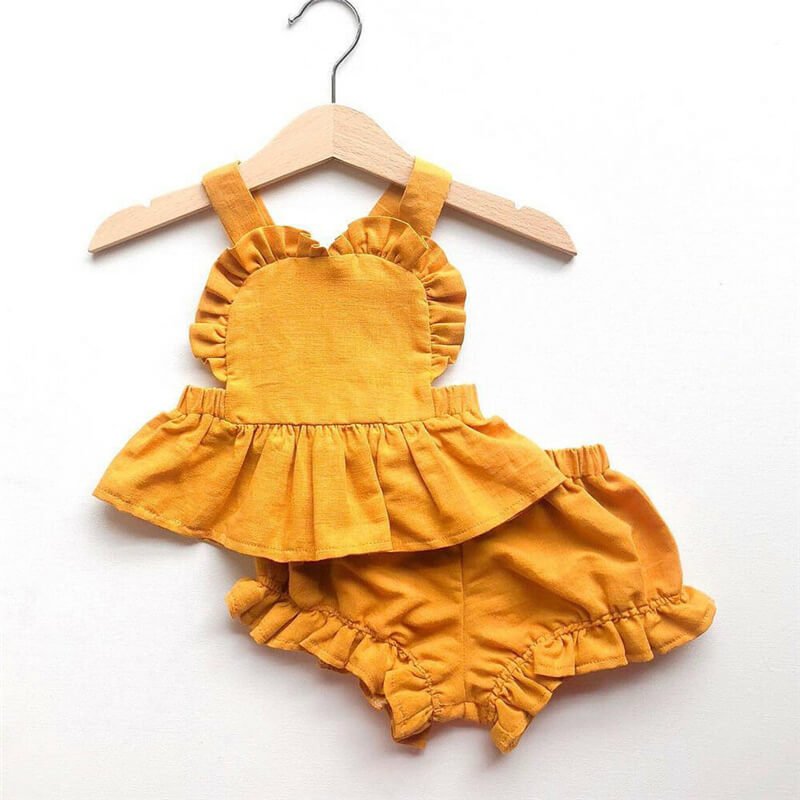 Girls Simple Solid Color Stringy Selvedge Tops And Shorts Set