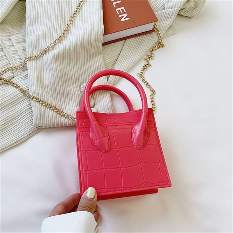 Girls Simple Square High Handle Design Crossbody Bags