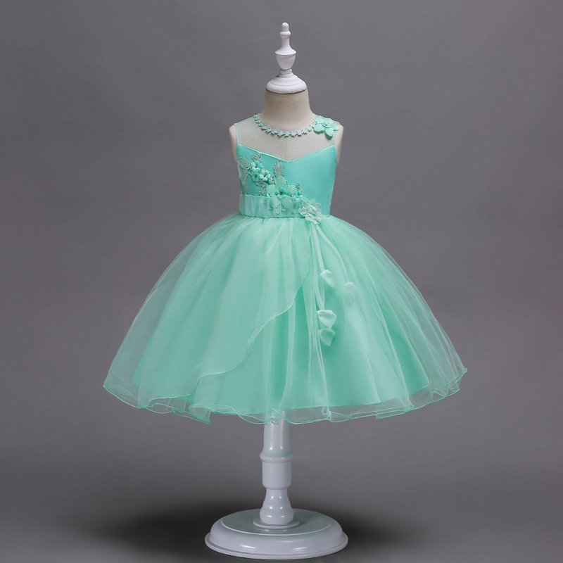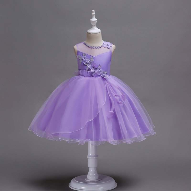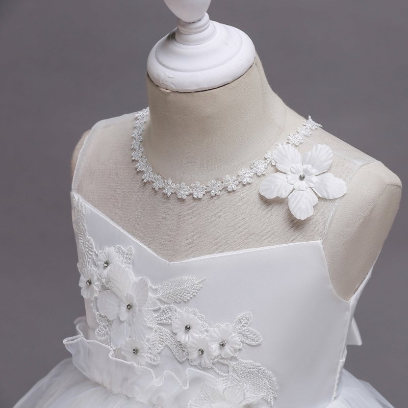 Girls Simple Style Flower Pattern Lace Tutu Dress