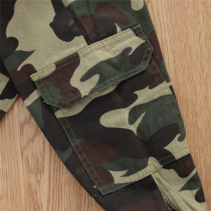 Girls Sleeveless Camisole And Long Sleeve Hooded Top And Camouflage Pants Set