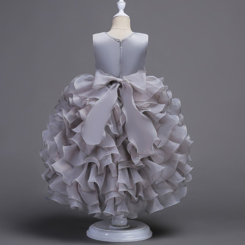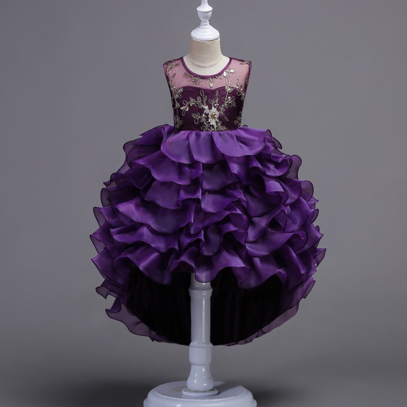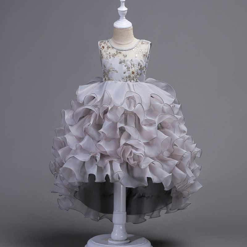 Girls Sleeveless Floral Embroidered Multilayer Party Dress