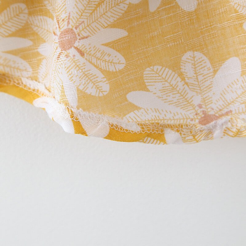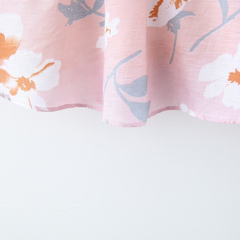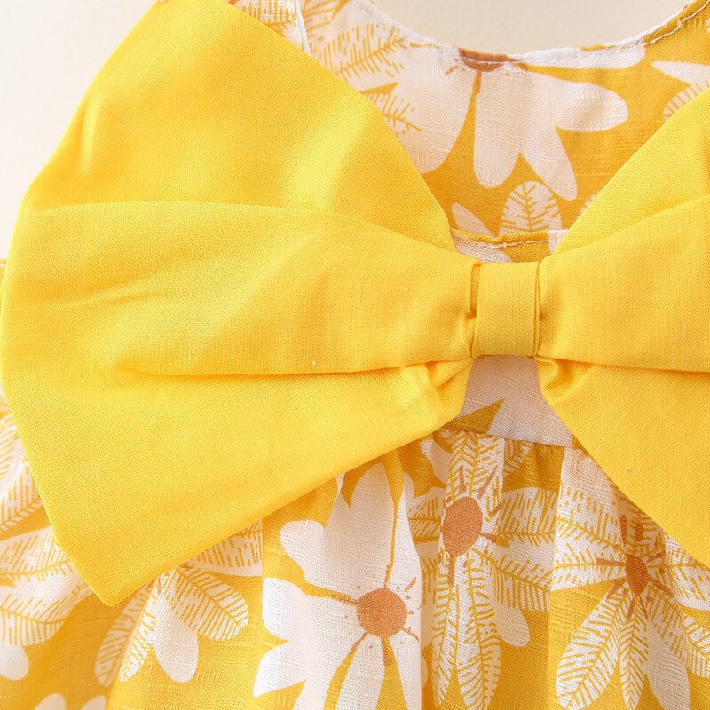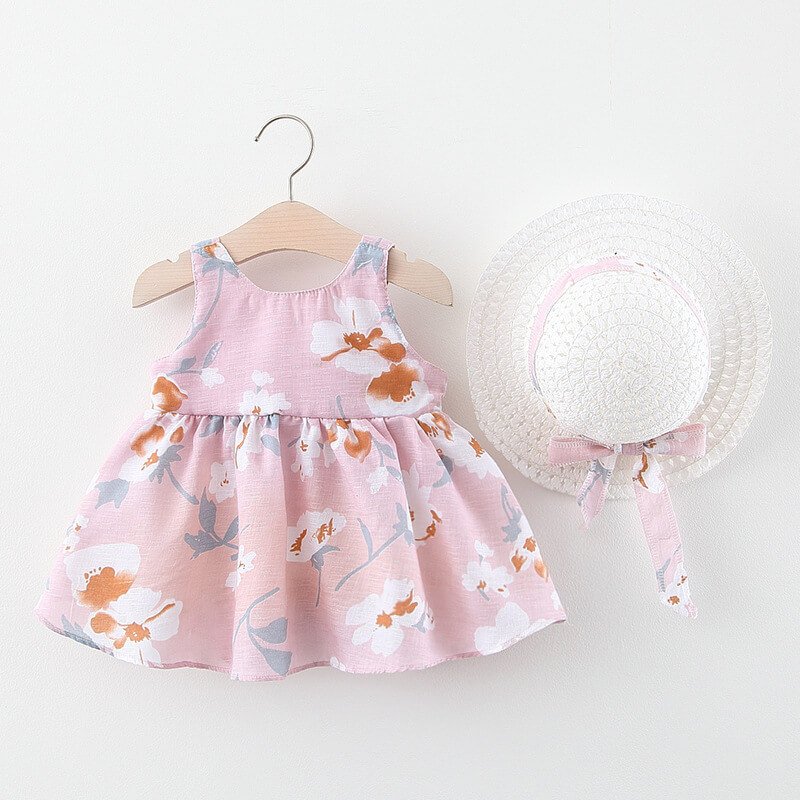 Girls Sleeveless Flower Pattern Bowknot Decor Dress And Hat Set