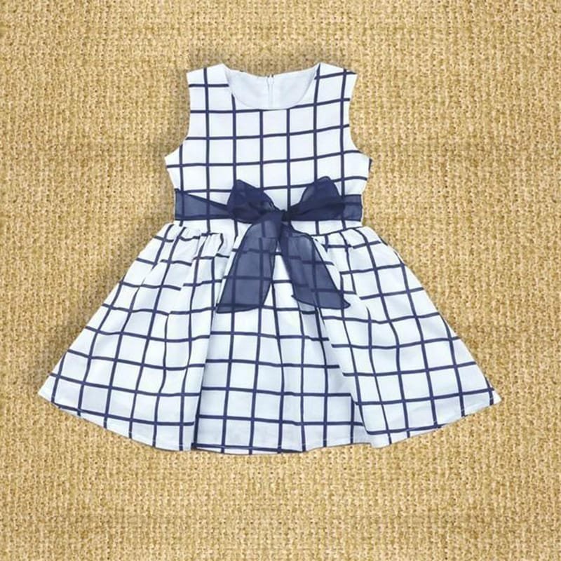 Girls Sleeveless Plaid Bowknot Decor Dress