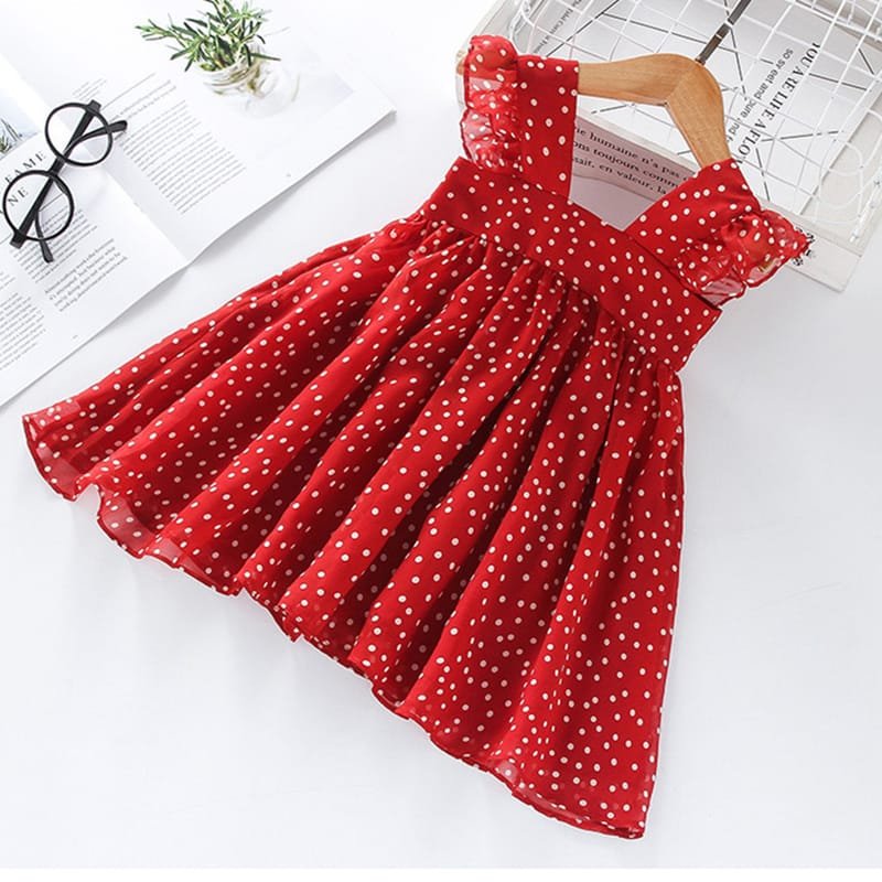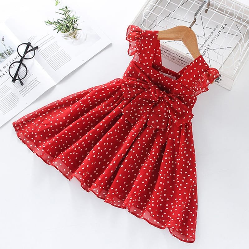 Girls Sleeveless Polka Dot Design Dress