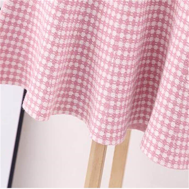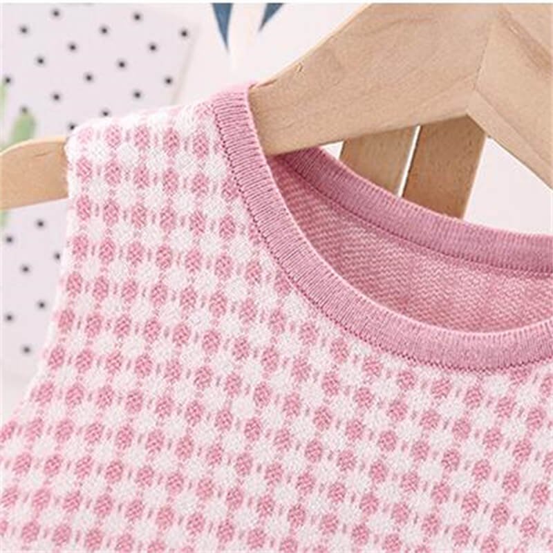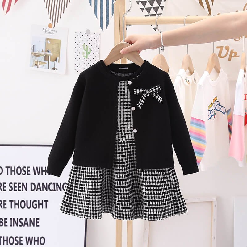 Girls Solid Color Bow Decor Coat And Plaid Sleeveless Dress Set