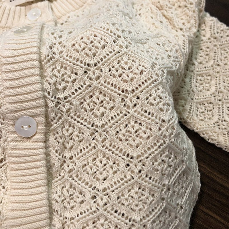 Girls Solid Color Hollow Out Knitting Cardigan Tops
