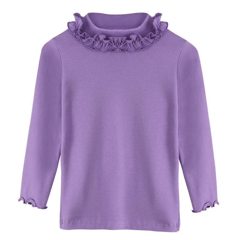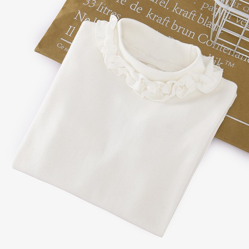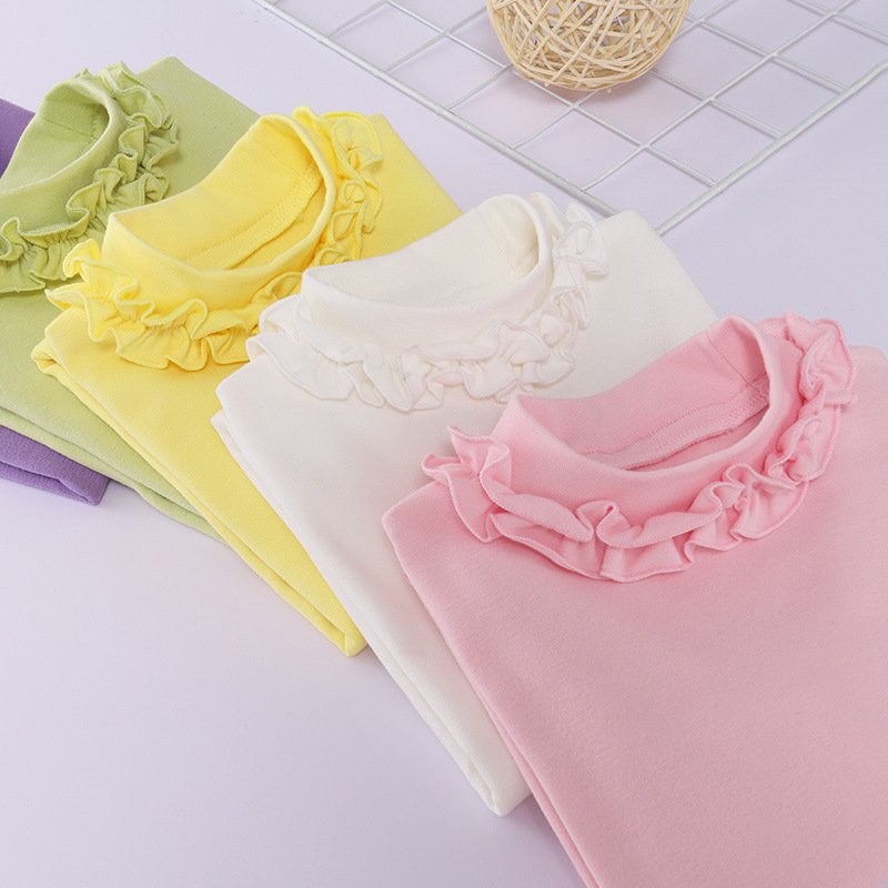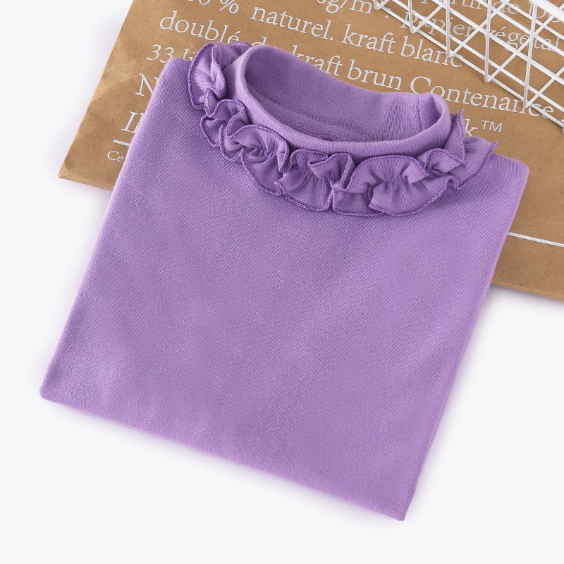 Girls Solid Color Lace Long Sleeve T-Shirt