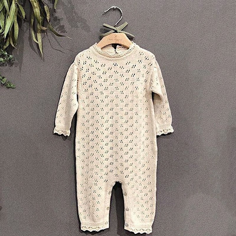 Girls Solid Color Long-Sleeve Knitting Jumpsuits With Hat