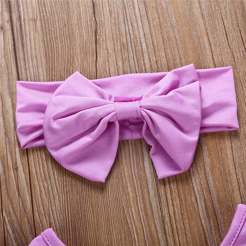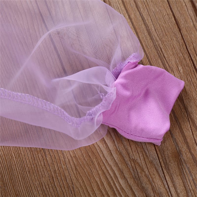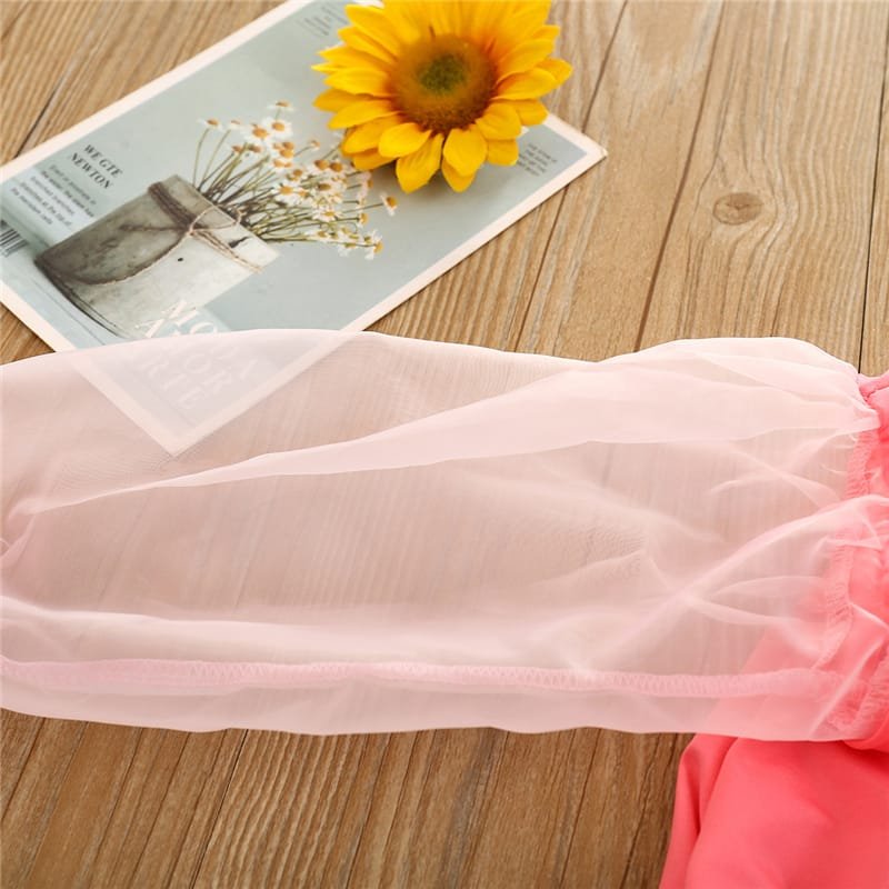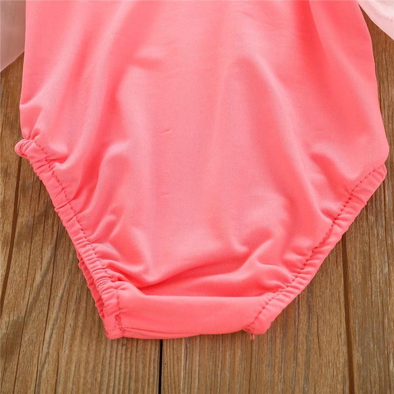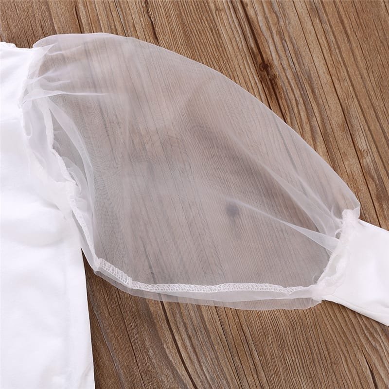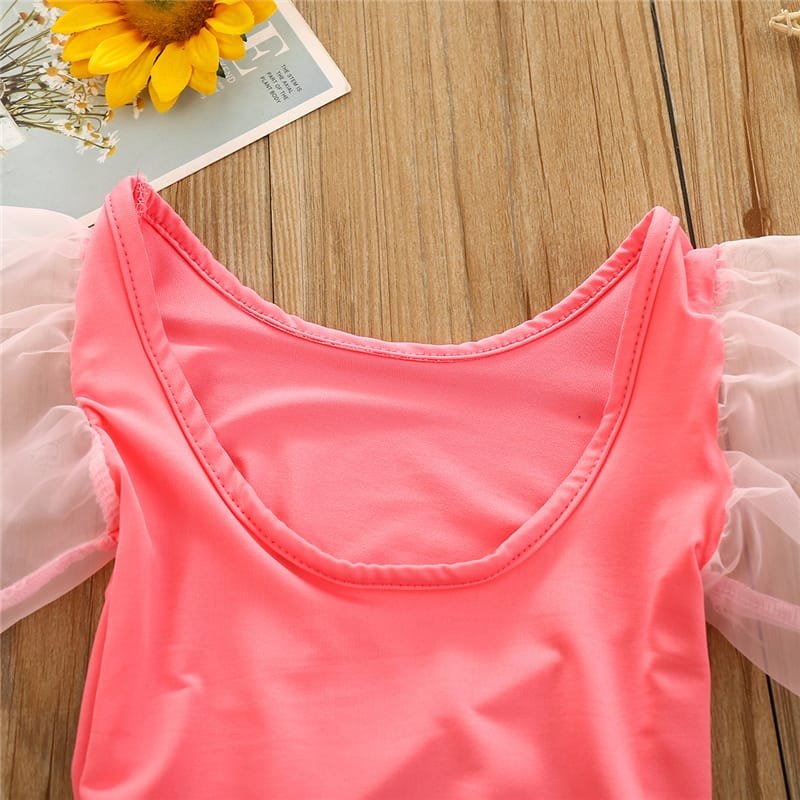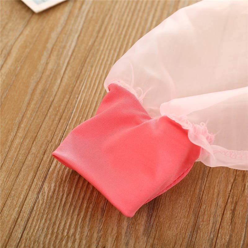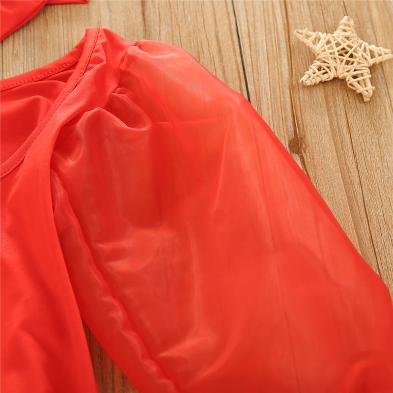 Girls Solid Color Mesh Long-sleeves Romper And Headband Set