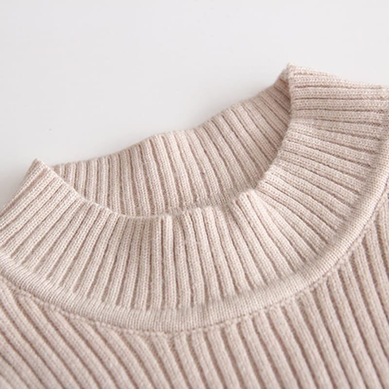 Girls Solid Color Round Neck Long-sleeves Dress