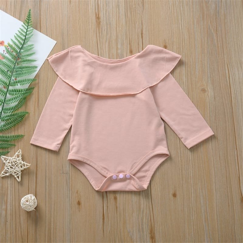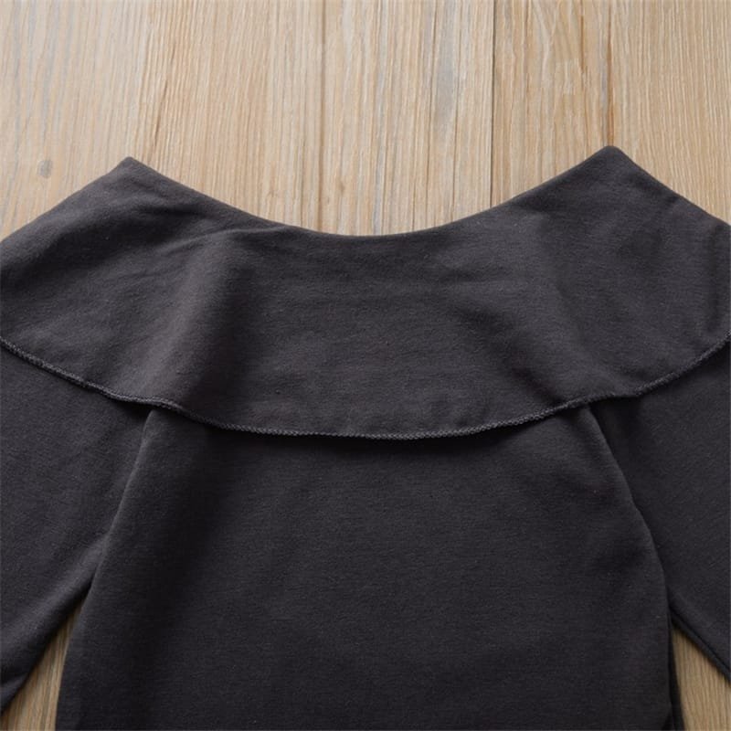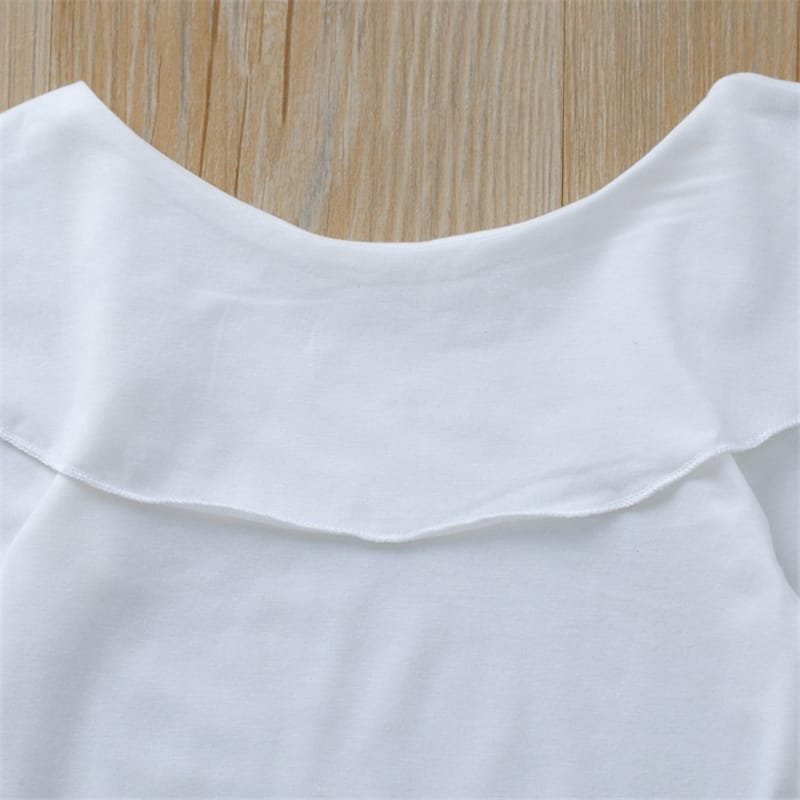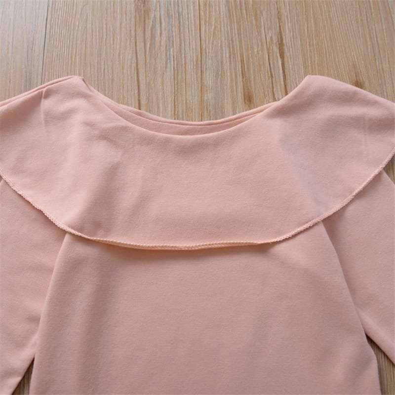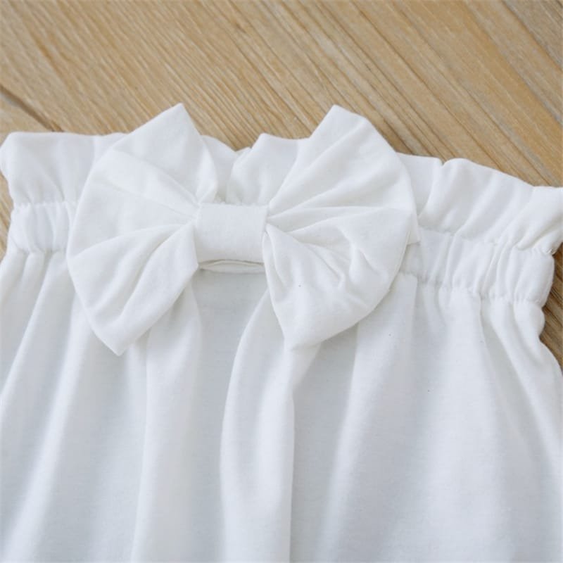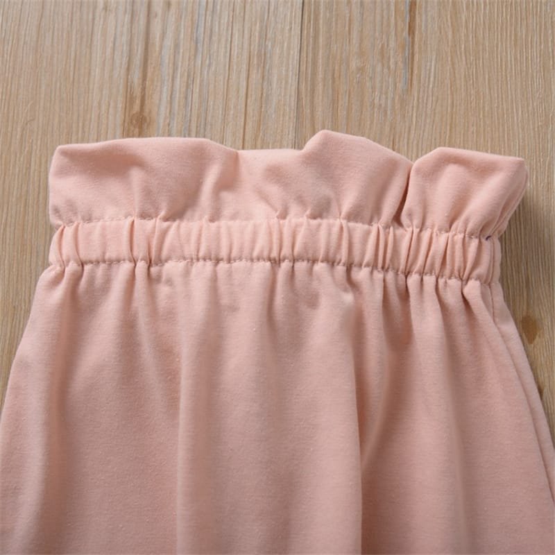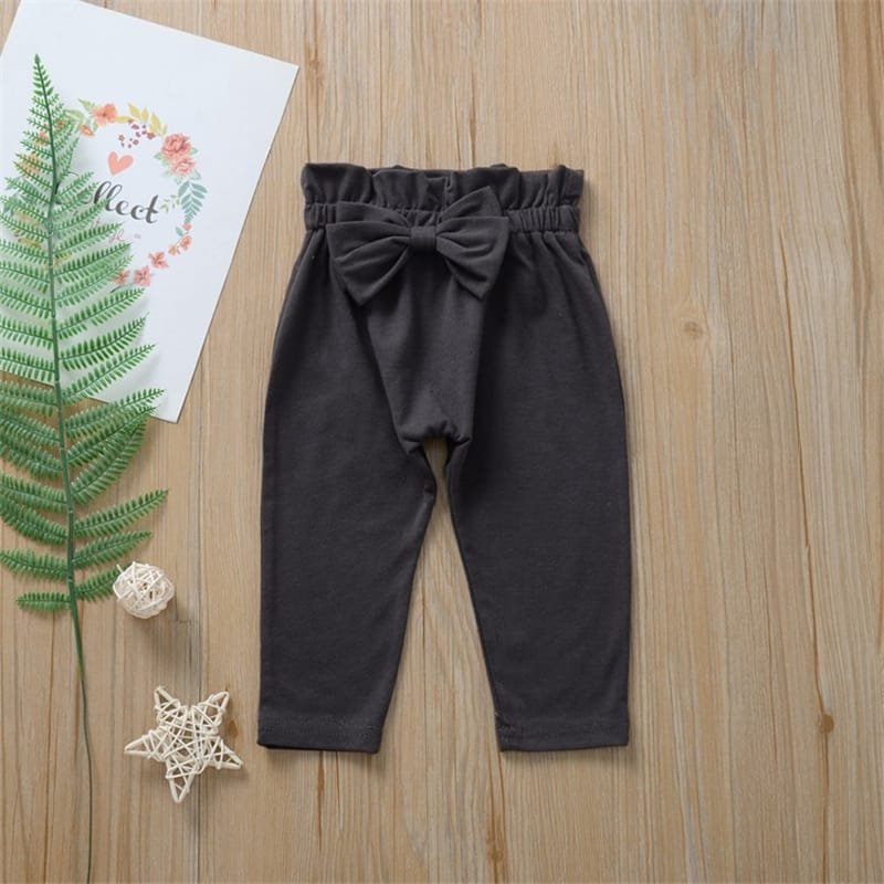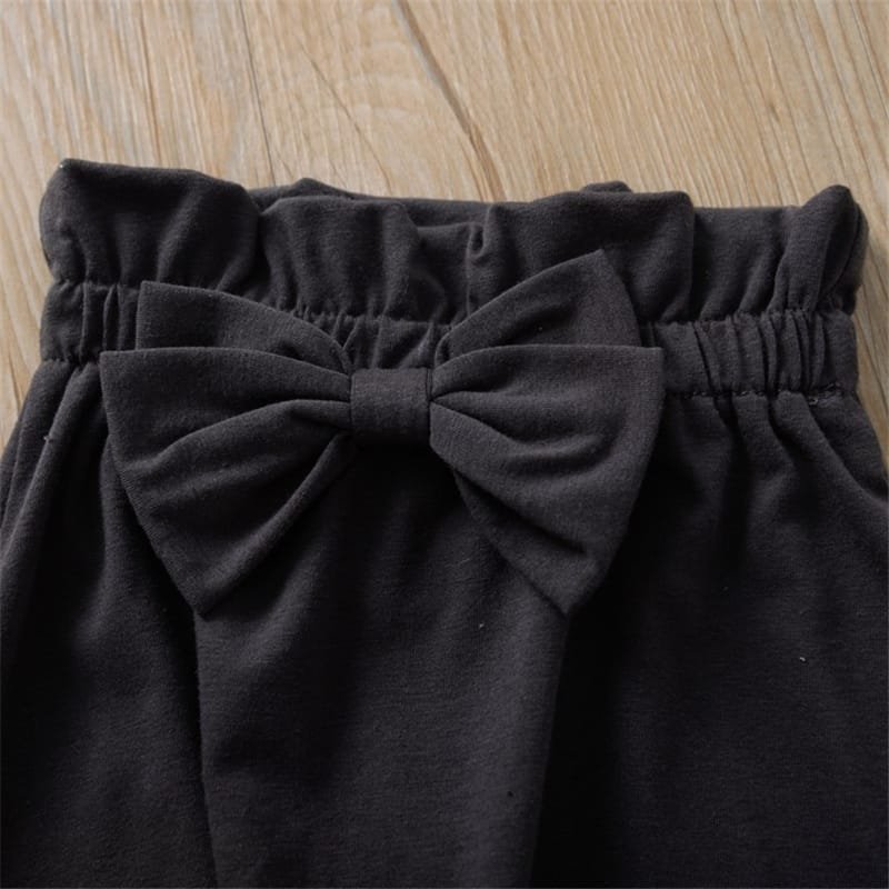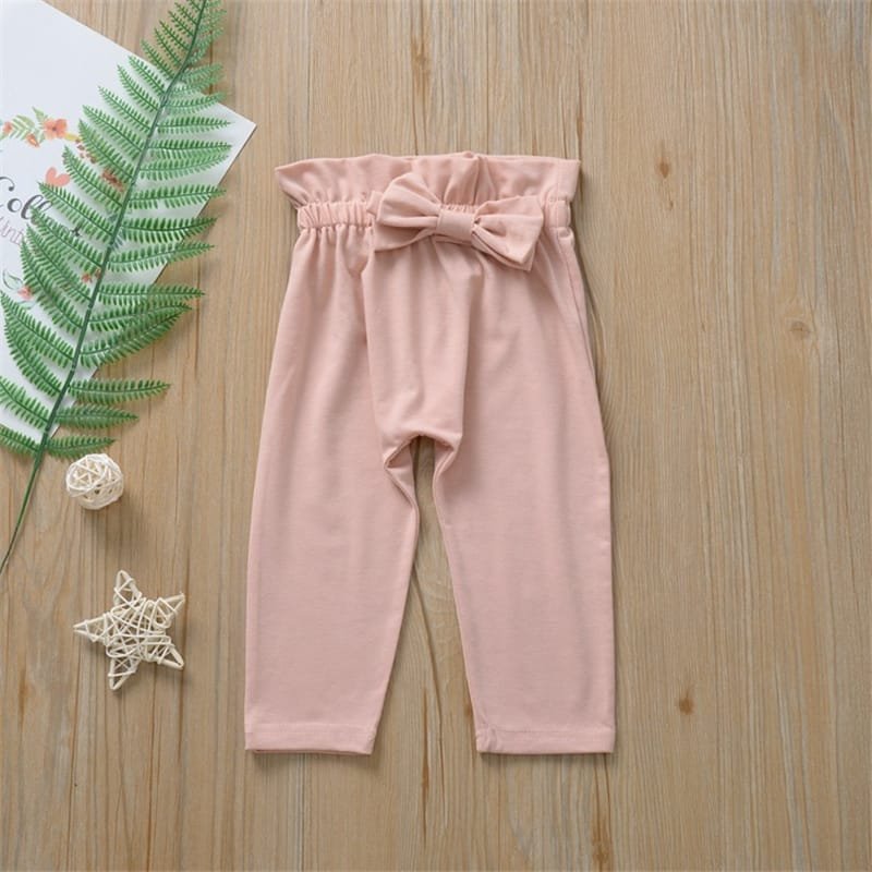 Girls Solid Color Ruffled Tops And Bowknot Decoration Pants