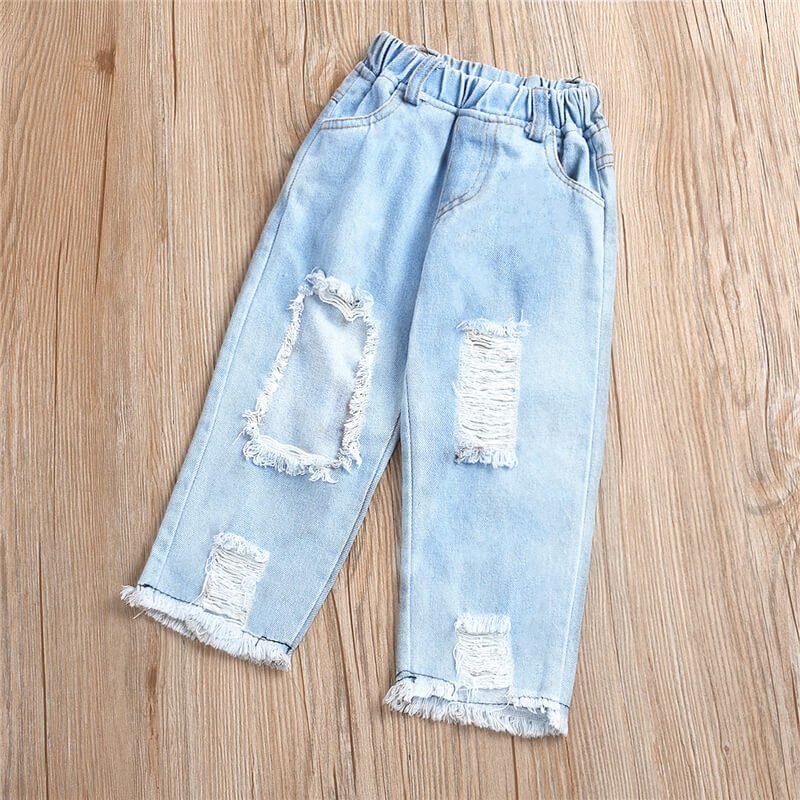 Girls Solid Color Short-sleeves Mesh Spliced Tops And Jeans
