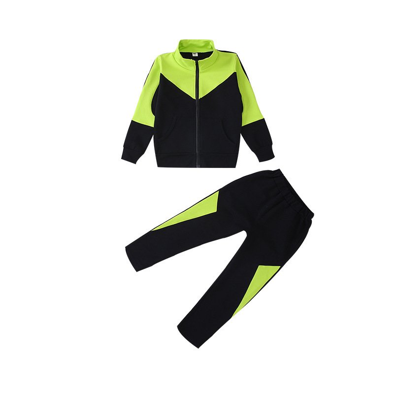Girls Sporty Casual Color Blocking Long Sleeve Geometry Zipper Coat And Pants Two-piece Set