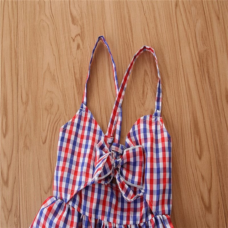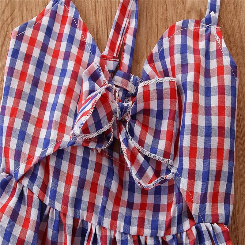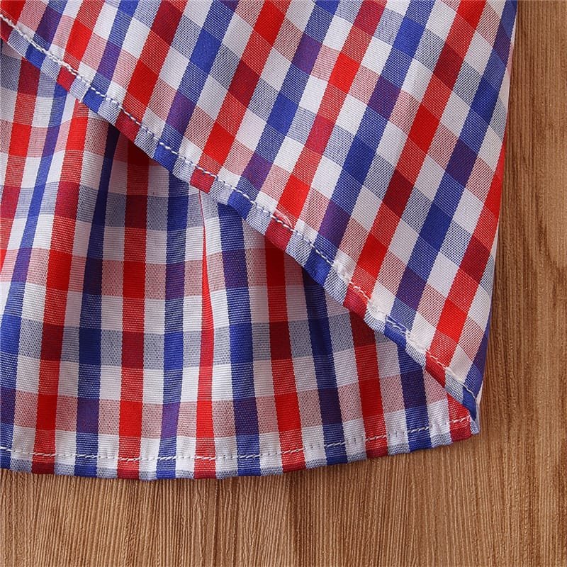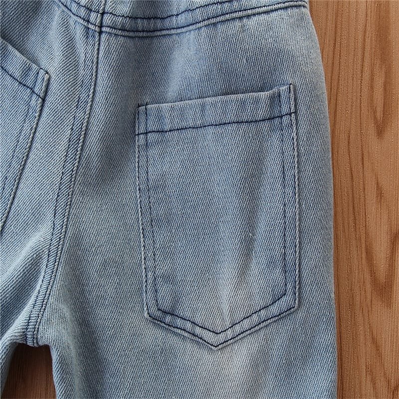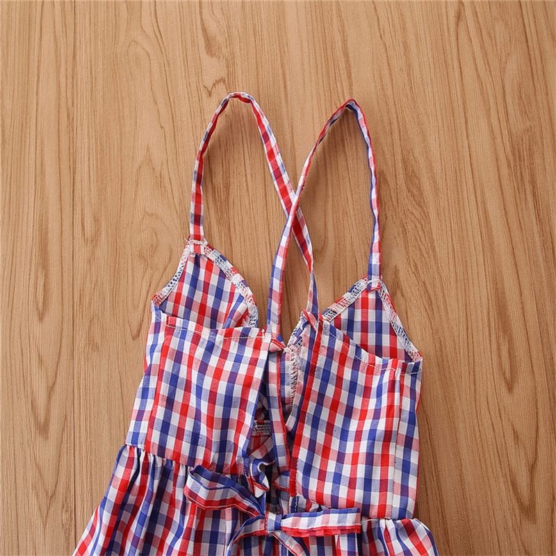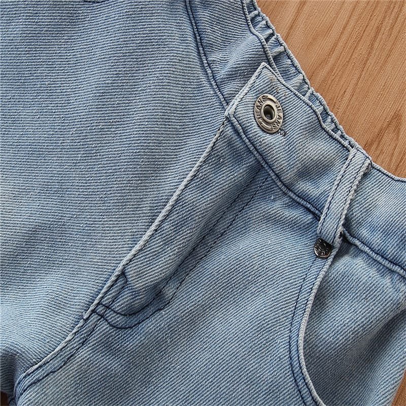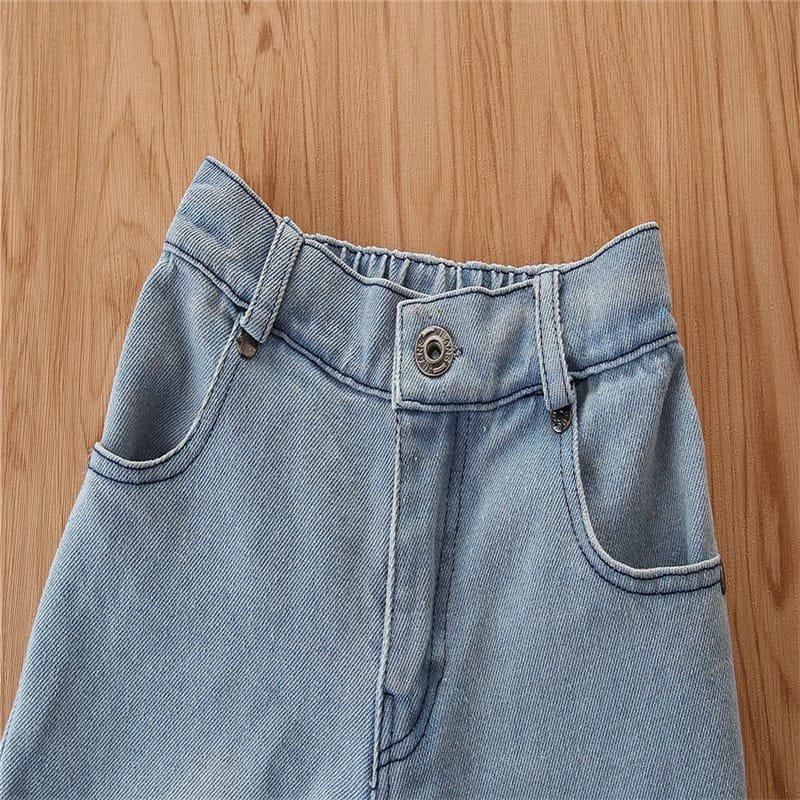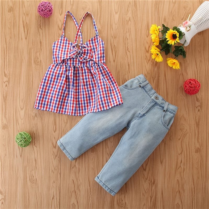 Girls Strap Plaid Tops And Jeans Set