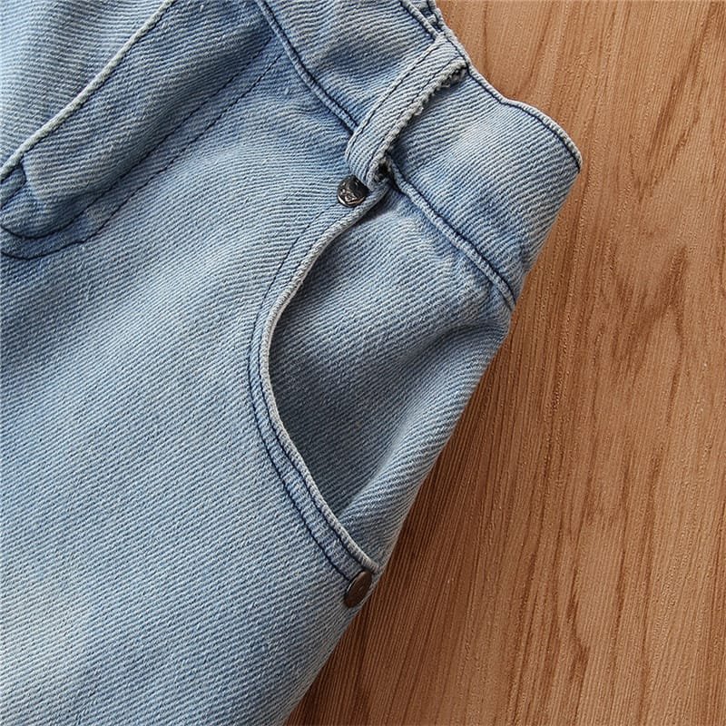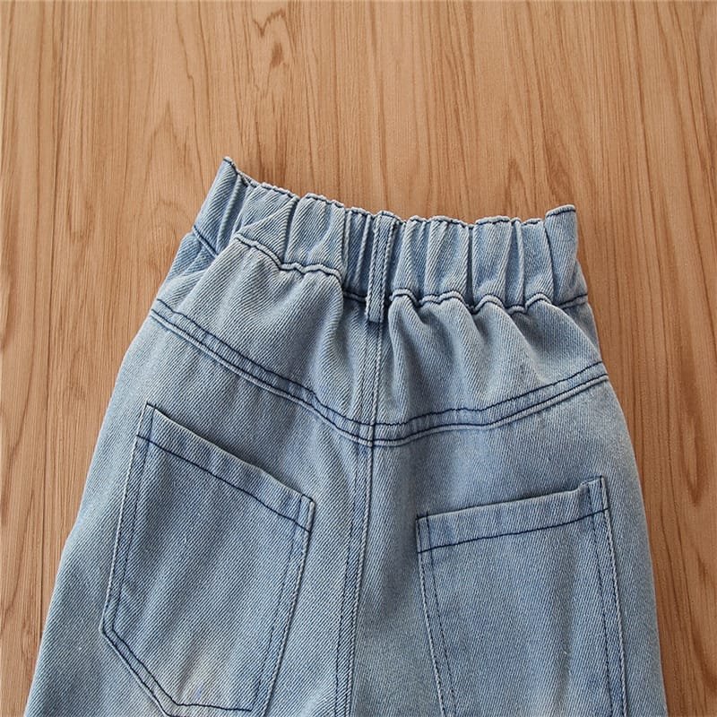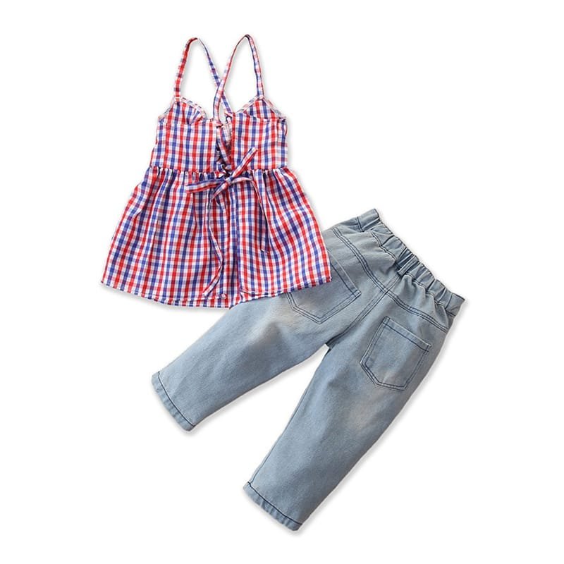 Girls Strap Plaid Tops And Jeans Set