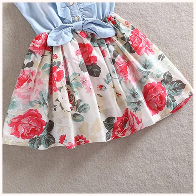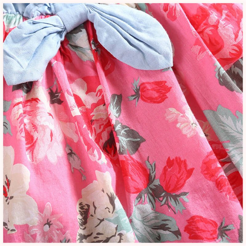 Girls Stringy Selvedge Design Flower Pattern Spliced Dress