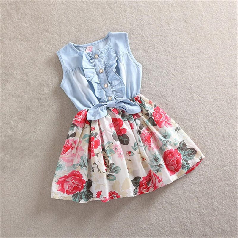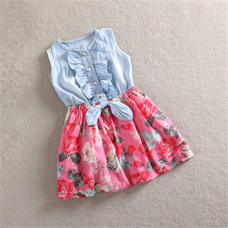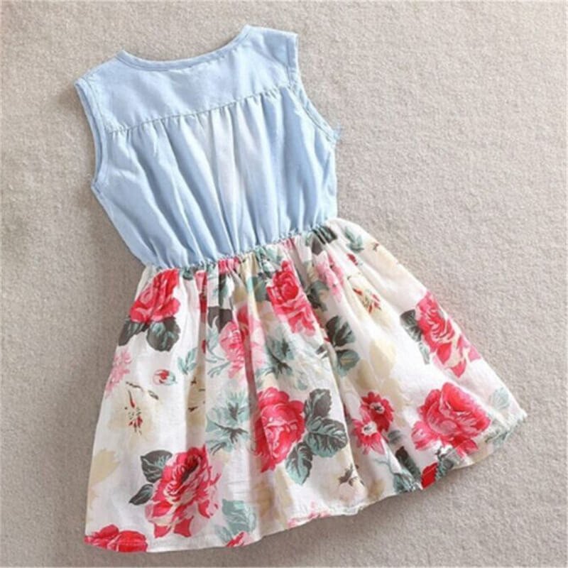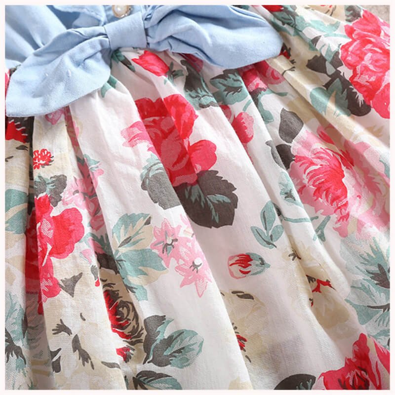 Girls Stringy Selvedge Design Flower Pattern Spliced Dress