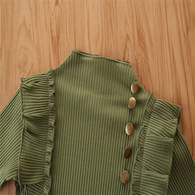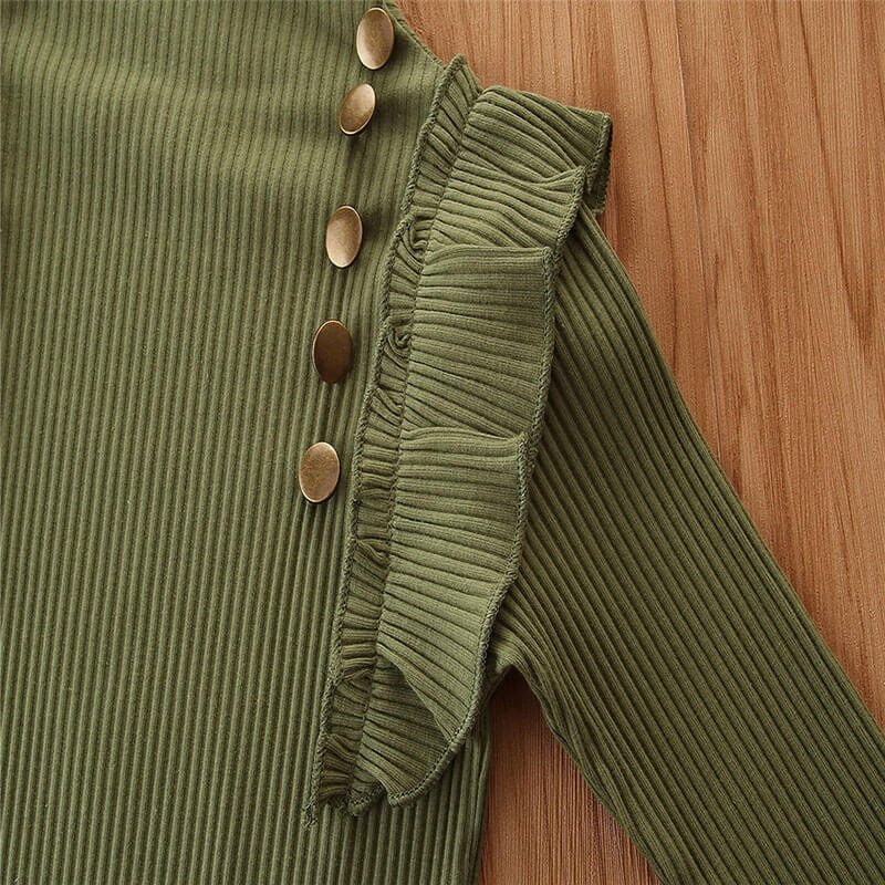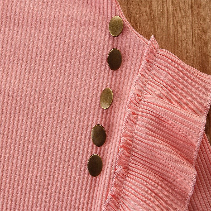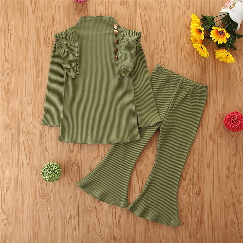Girls Stringy Selvedge Design Long-sleeves Tops And Pants Set