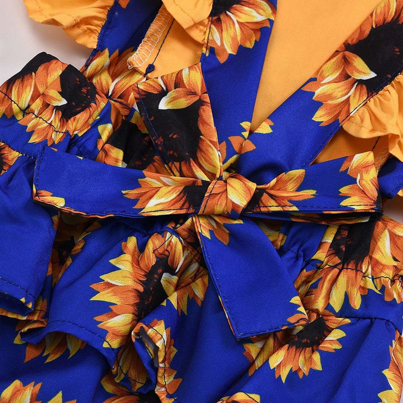 Girls Summer Fashion Flower Print Jumpsuit