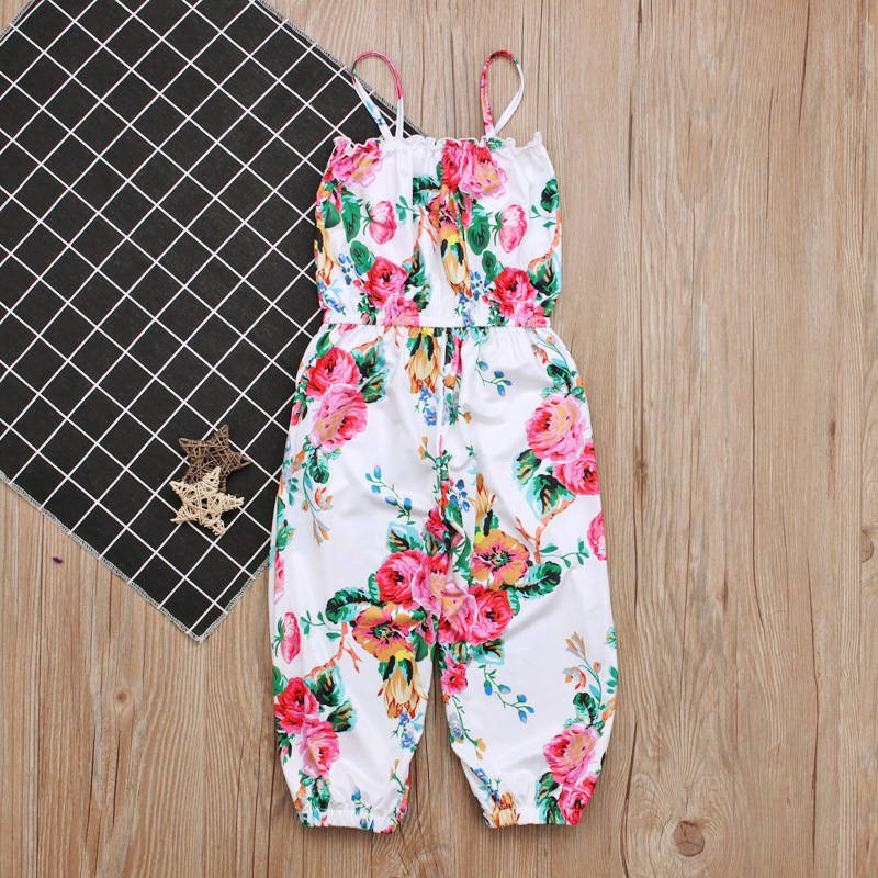 Girls Summer Flower Print Suspender Sleeveless Romper