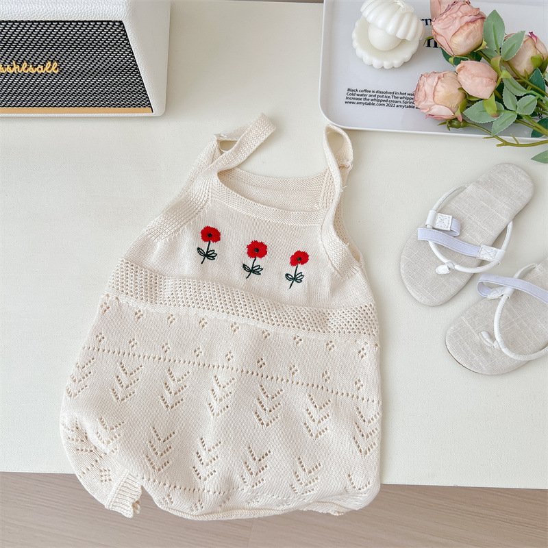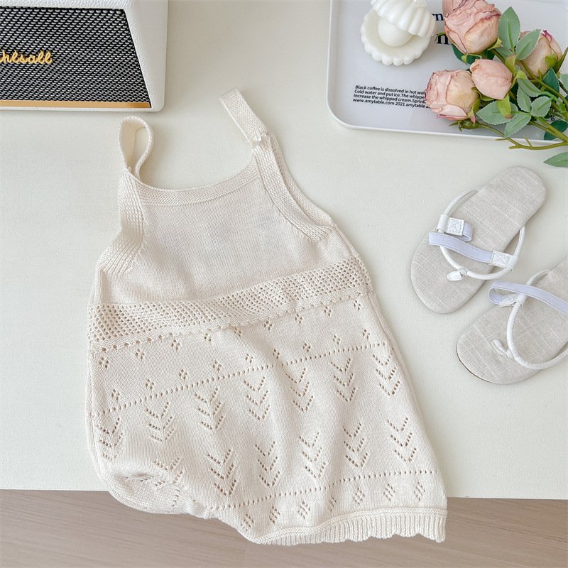 Girls Summer Knitted Cotton Floral Hollow Out Camisole Dress