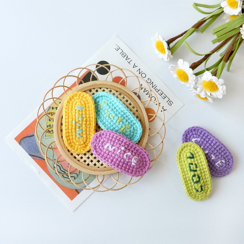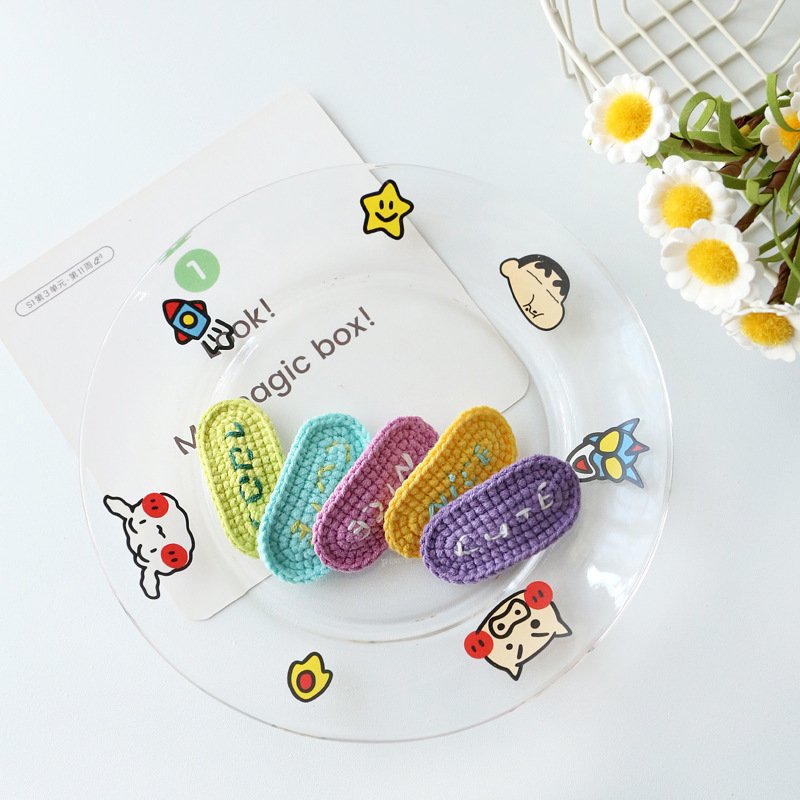 Girls Sweet Color Blocking Letter Wool Embroidery Hairpin