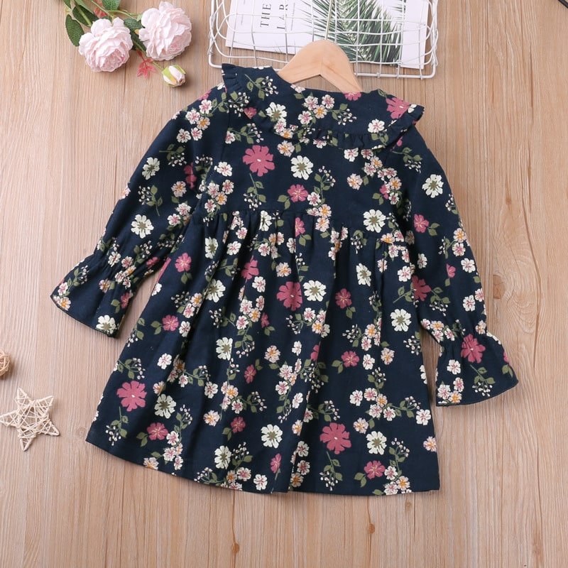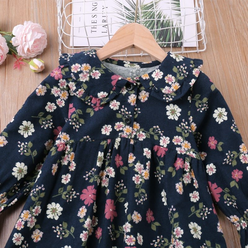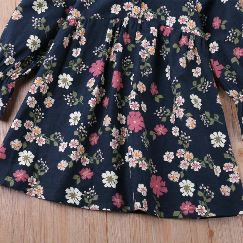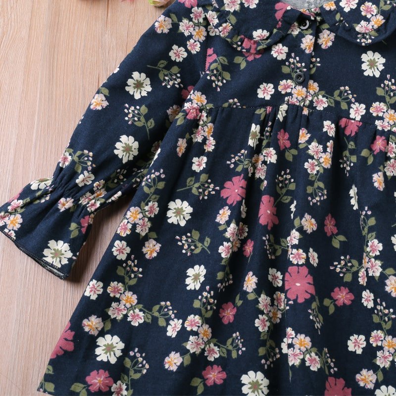 Girls Sweet Lapel Horn Sleeve Design Floral Dress
