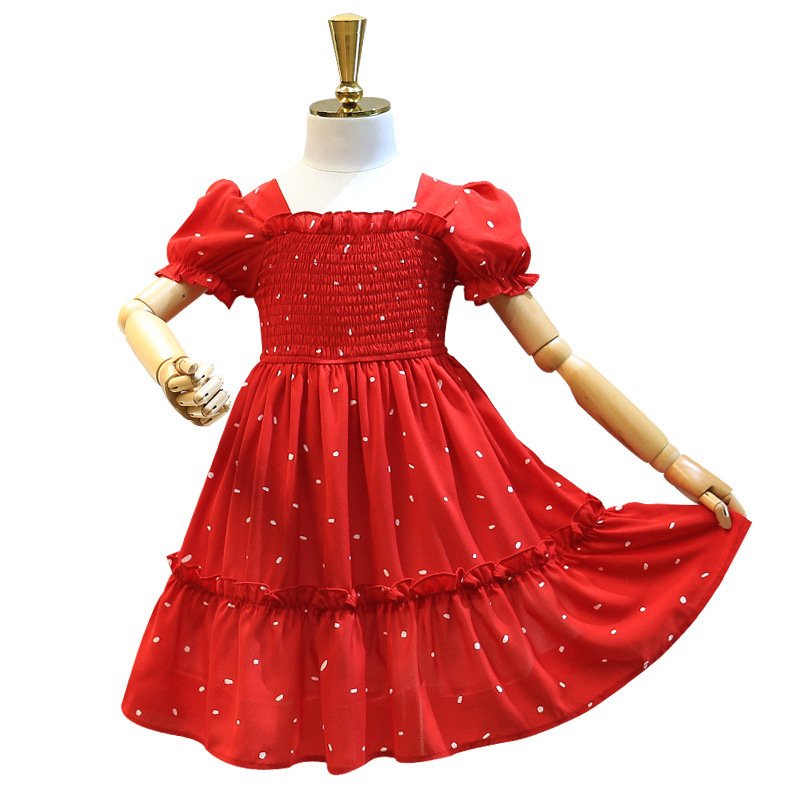 Girls Sweet Short Sleeve Stringy Selvedge Elastic Chiffon Princess Dress