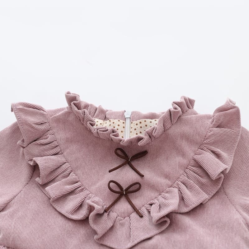 Girls V Shape Stringy Selvedge Design Solid Color Dress