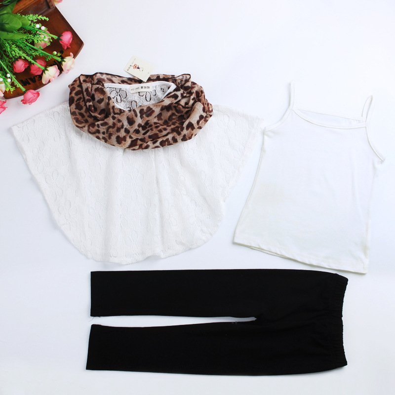 Girls Vest Lace Bat Shirt And Leggings With Scarf Set