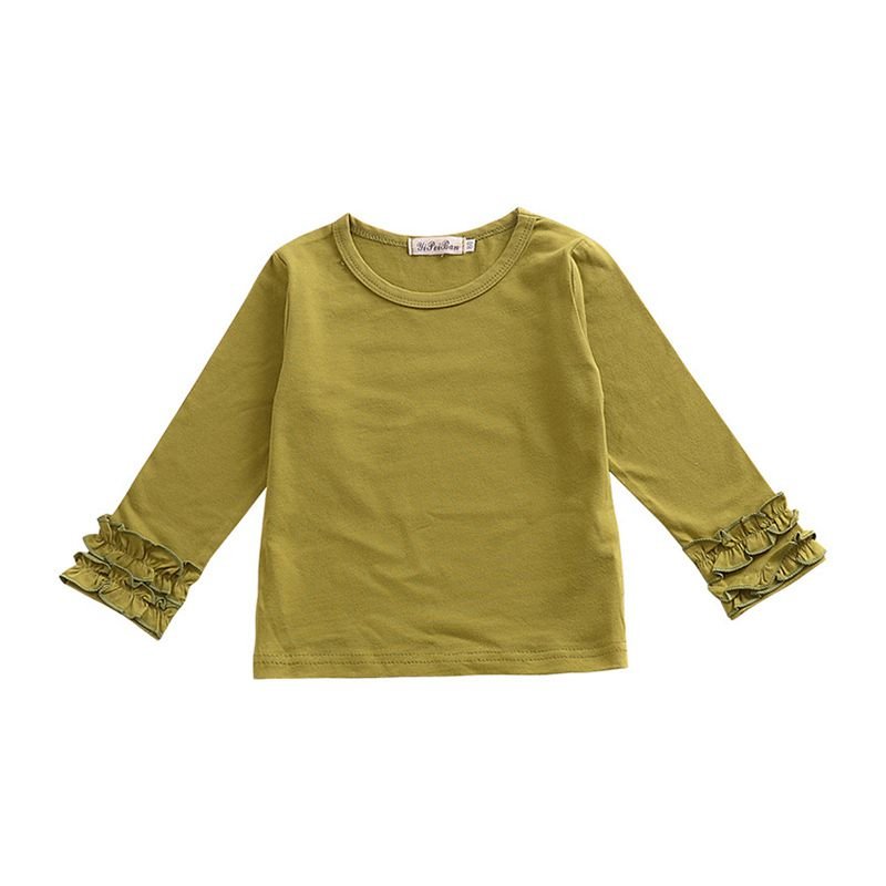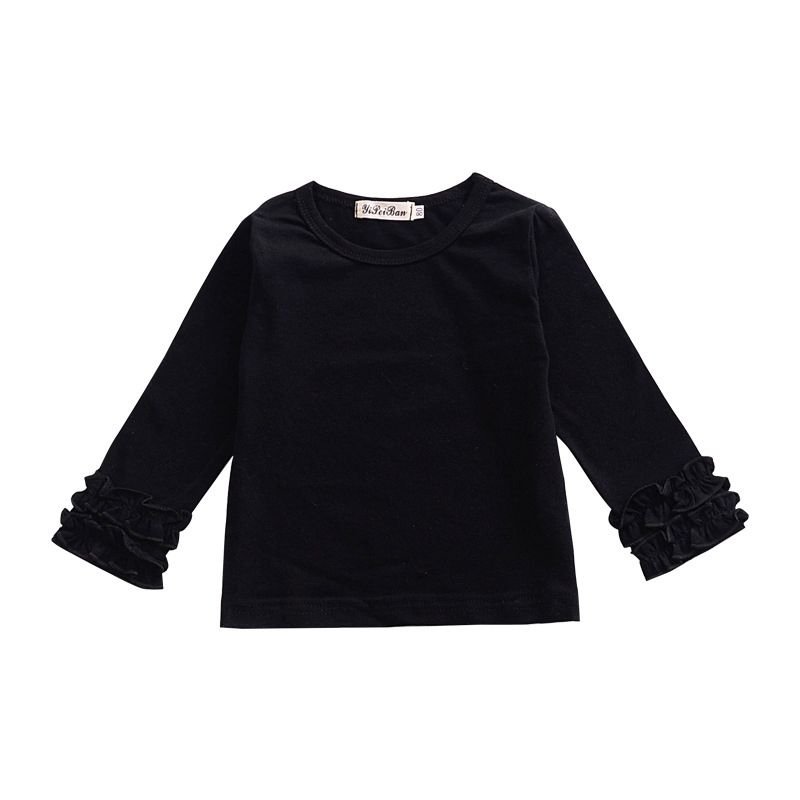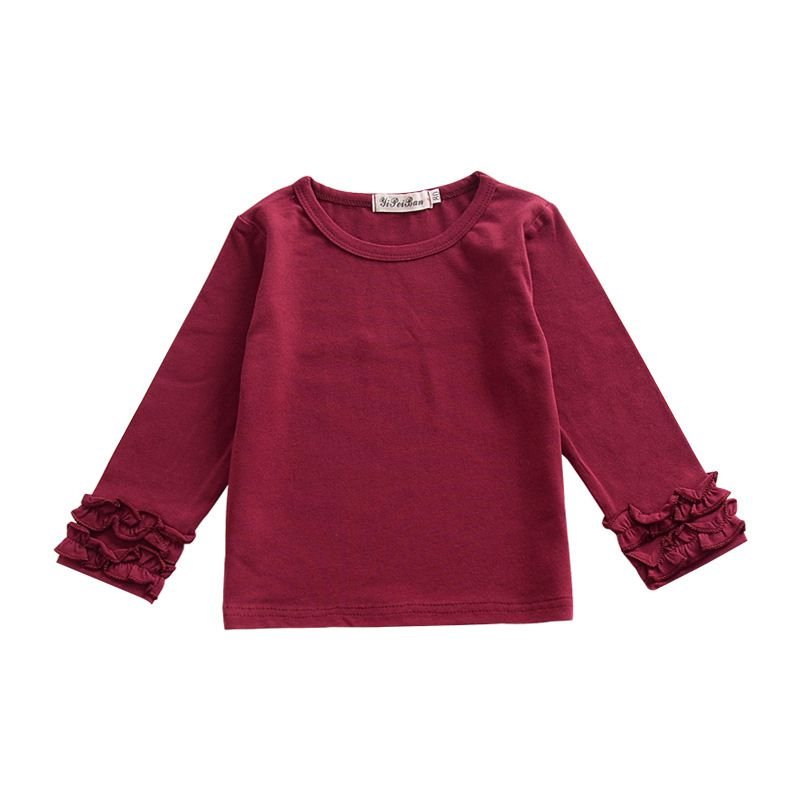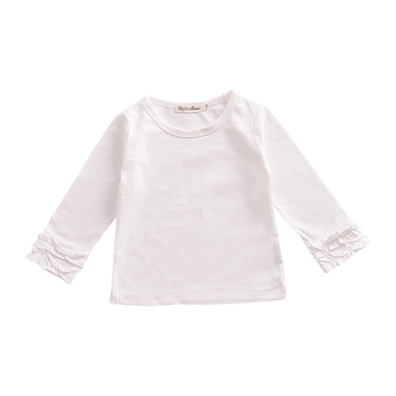 Hot Selling Girls Cotton Soild Color Floral Long Sleeves Blank Pretty Tops