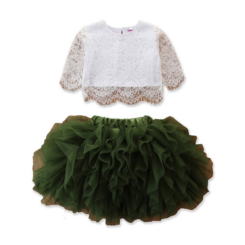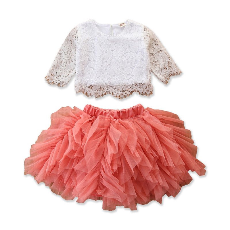 Kid Girl Sweet Lace Top And Tutu Dress Two-Piece Set