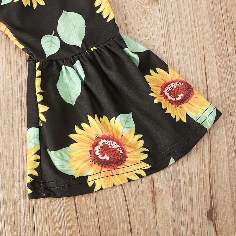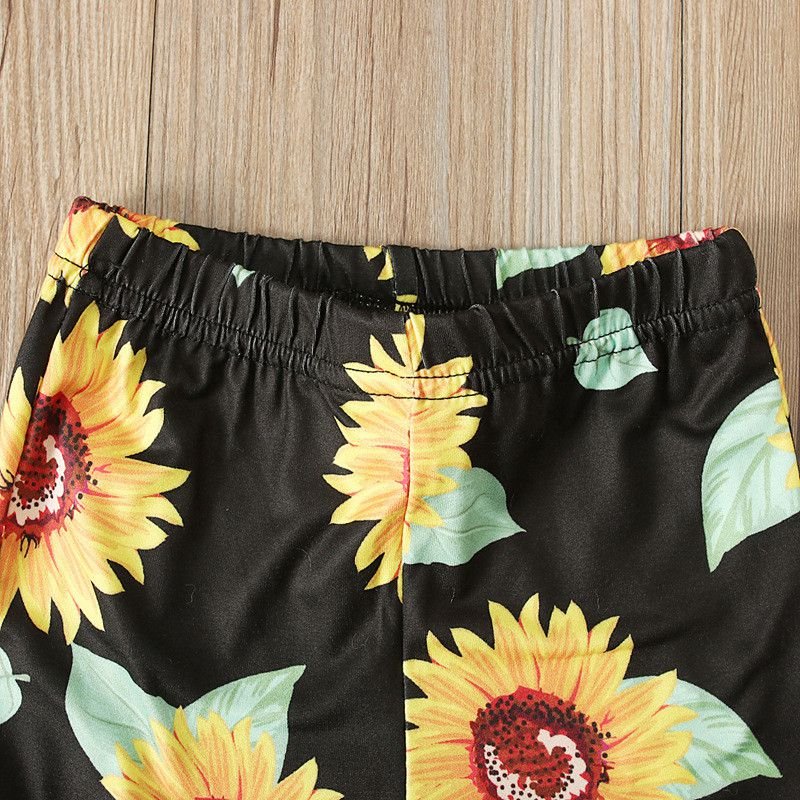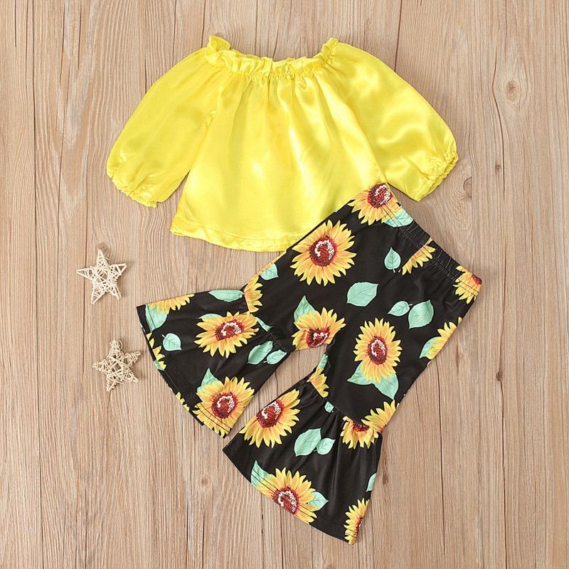 Kids 2 Pcs Set Kids Gir Yellow Tops And Sunflower Print Pants