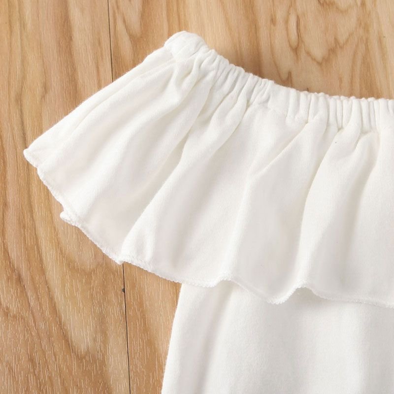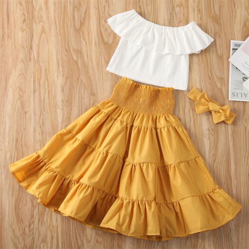 Kids 3pcs Girls Off Shoulder Ruffle Crop Top And High Waist A-Line Skirts With Headband