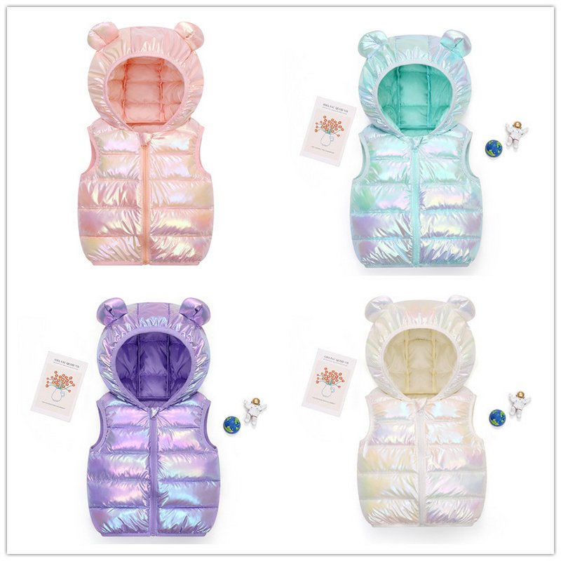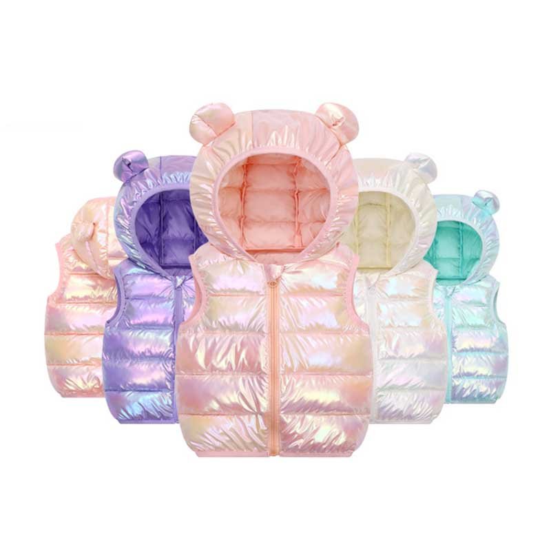 Kids Autumn And Winter Cute Colorful Sleeveless Hooded Down Vest