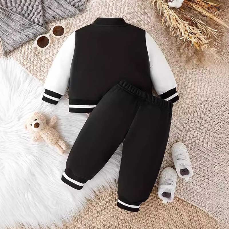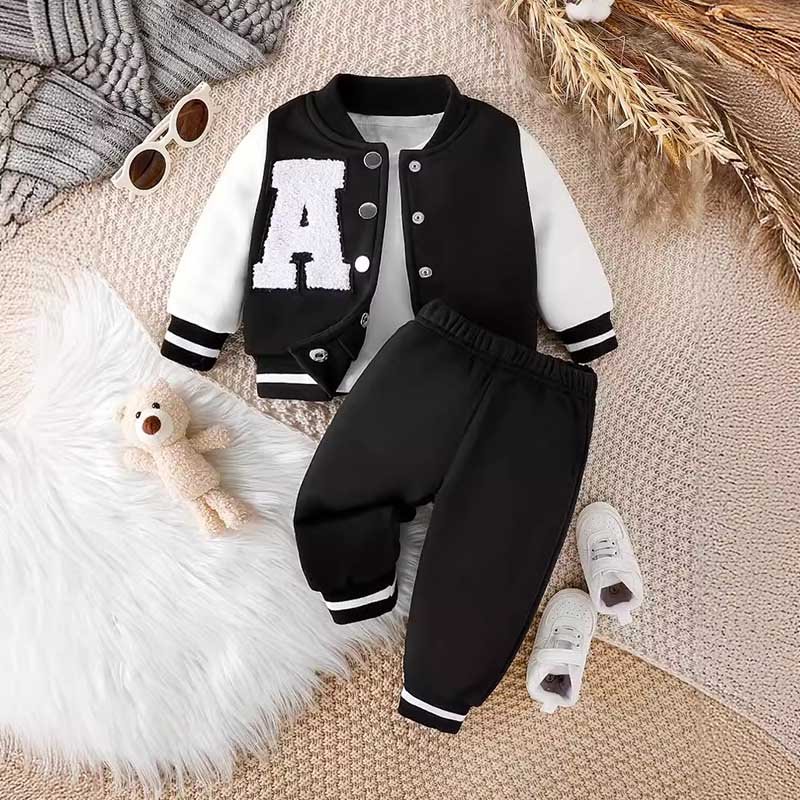 Kids Baby Boys Autumn Winter Casual Sports Alphabet Long Sleeve Coat Trousers Sets