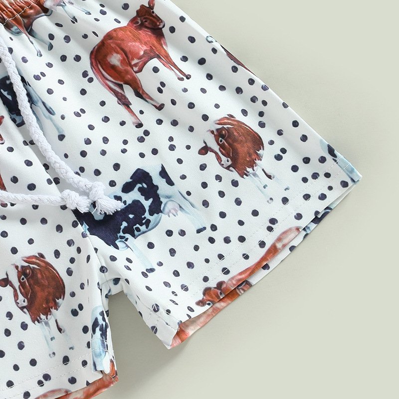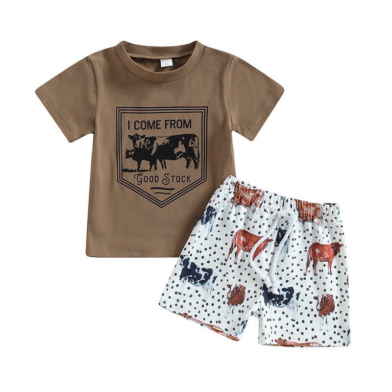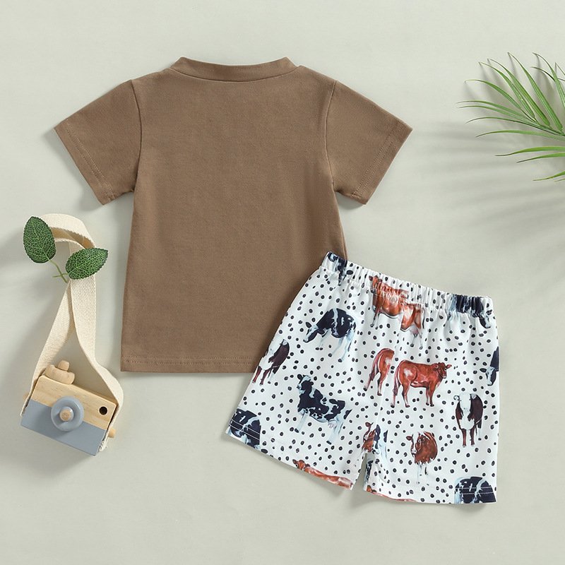 Kids Baby Boys Casual Cute Cartoon Print Short Sleeve Round Neck T-Shirt Shorts Set
