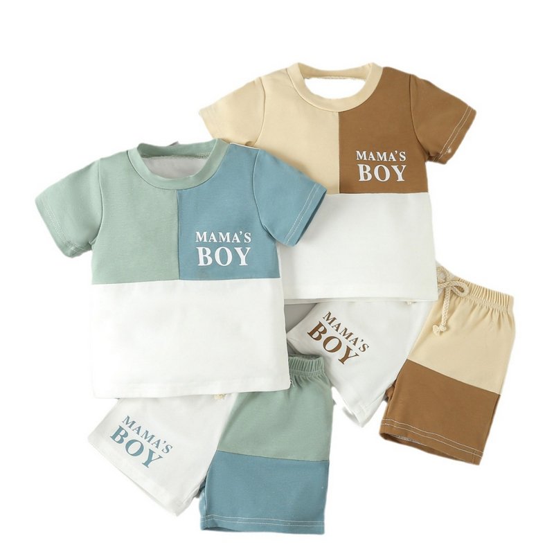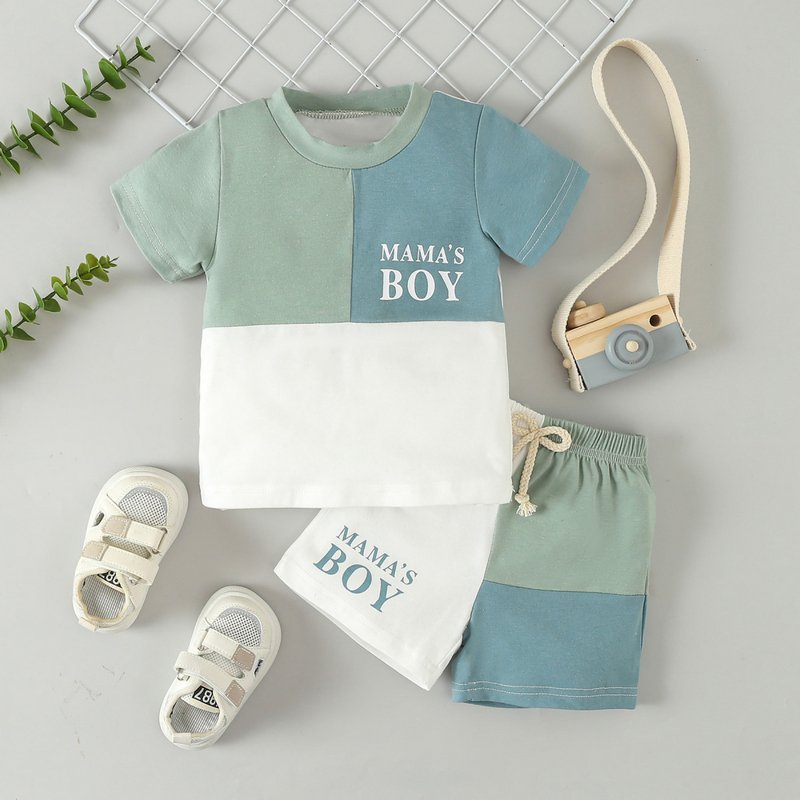 Kids Baby Boys Casual Cute Colorblock Letter Print Short Sleeve Round Neck T-Shirt Shorts Set