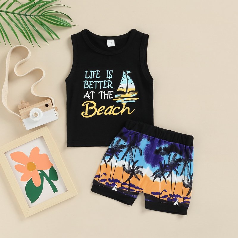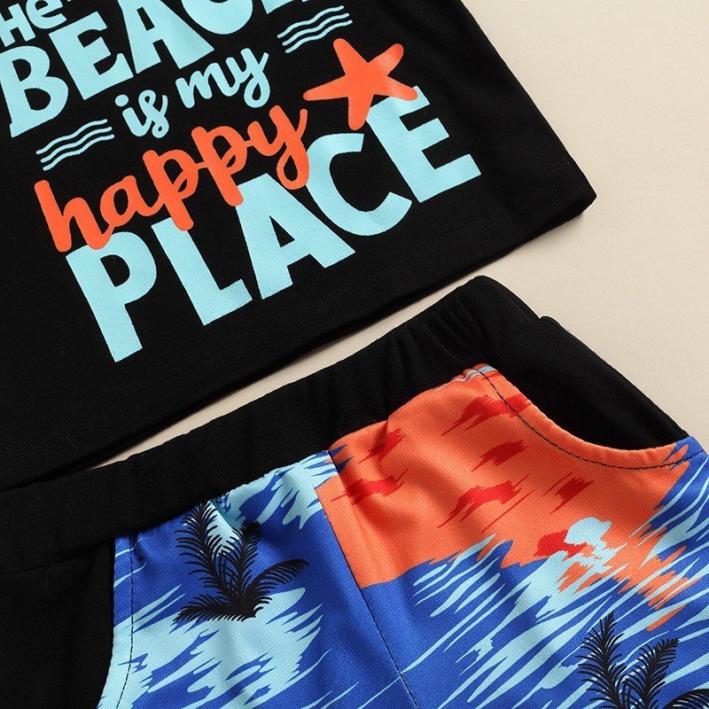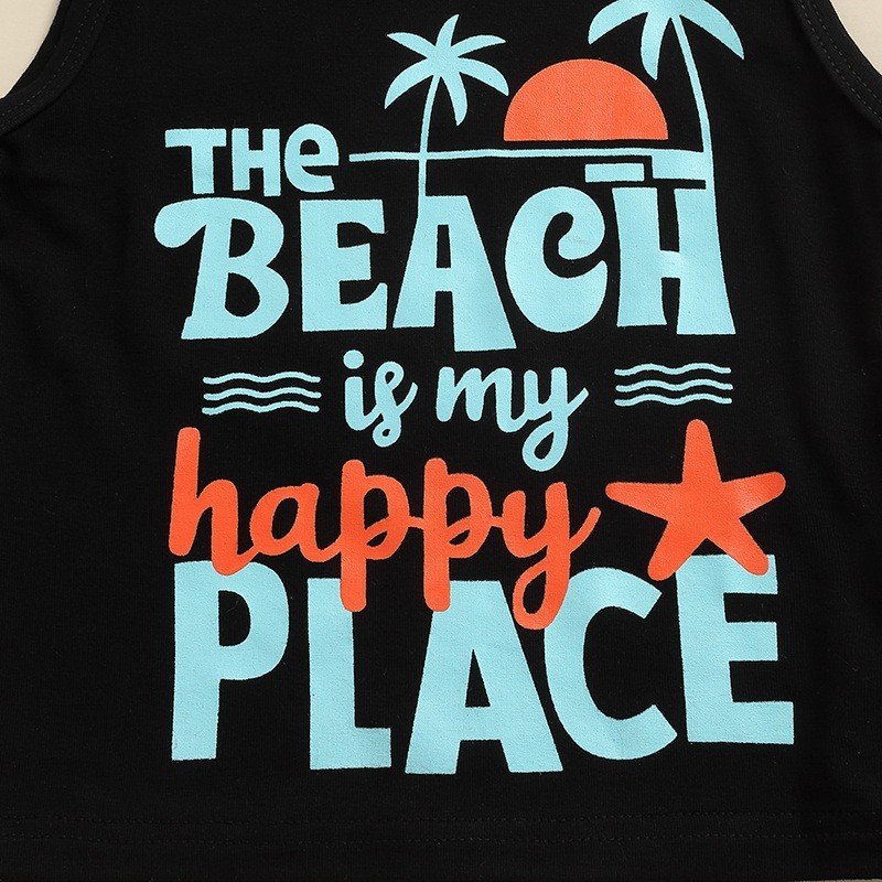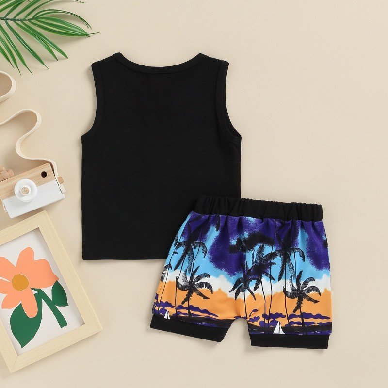 Kids Baby Boys Casual Vacation Letter Print Sleeveless Round Neck Tank Top Shorts Set