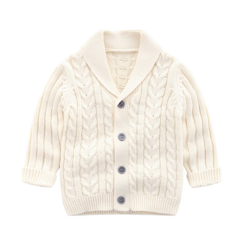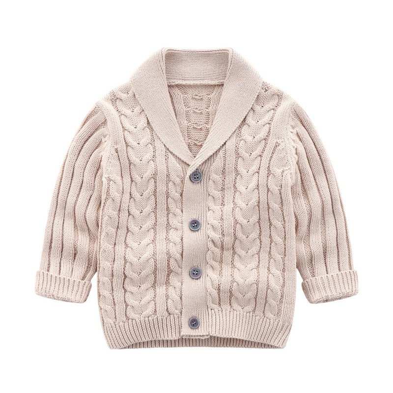 Kids Baby Boys Fall Winter Casual Cute Solid Color Rib-Kni Long Sleeve Lapel Cardigan Knitted